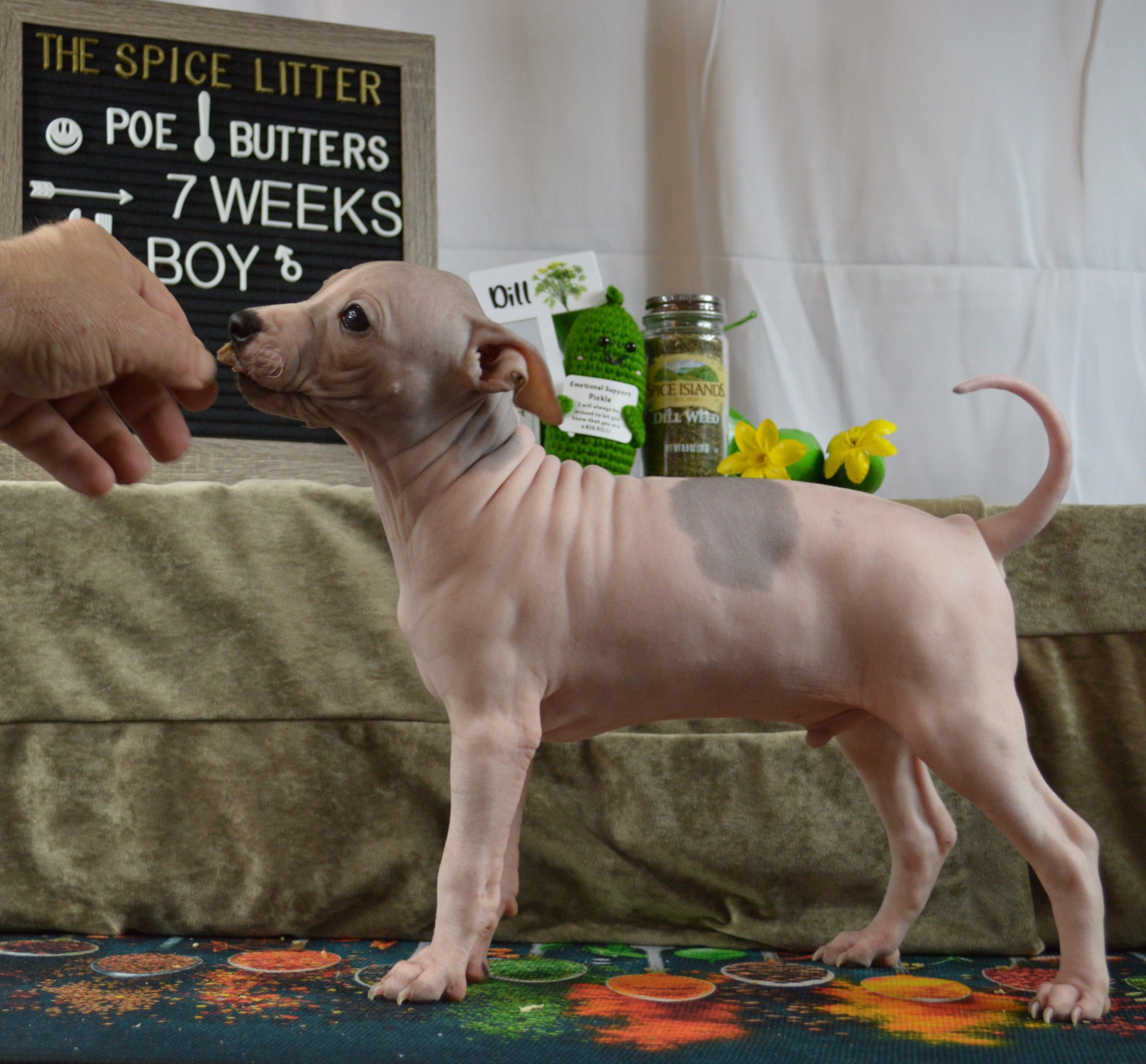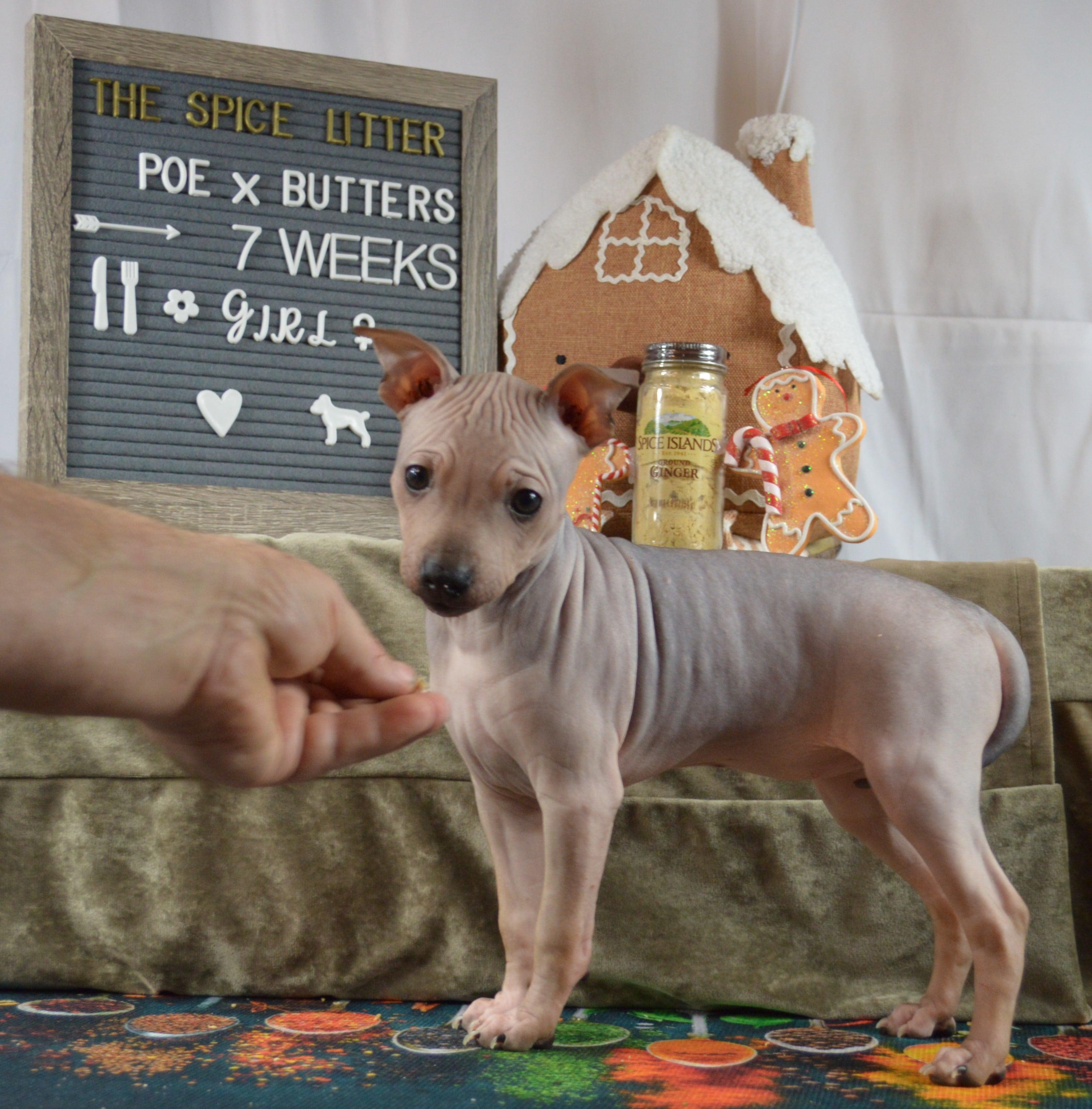 Butters is a female American Hairless Terrier. Carefully selected as a great representative of her breed, Randy & Ruth decided to make her part of their program. Randy & Ruth has passed Good Dog’s screening process, which involved a review of their breeding practices, environment, and the mental and physical health of their dogs.