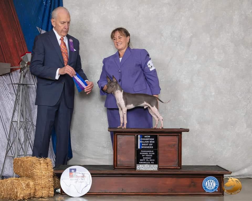 I'm Randy & Ruth D., the breeder behind Nekkid Ambition AHT's located in Alvin, TX. We enjoy showing our dogs, and they are our companions in every adventure. We are invested in helping this breed thrive. We do all that we can to give our puppies the best lives, including proper health care, thorough socialization, and finding them each wonderful, loving homes.