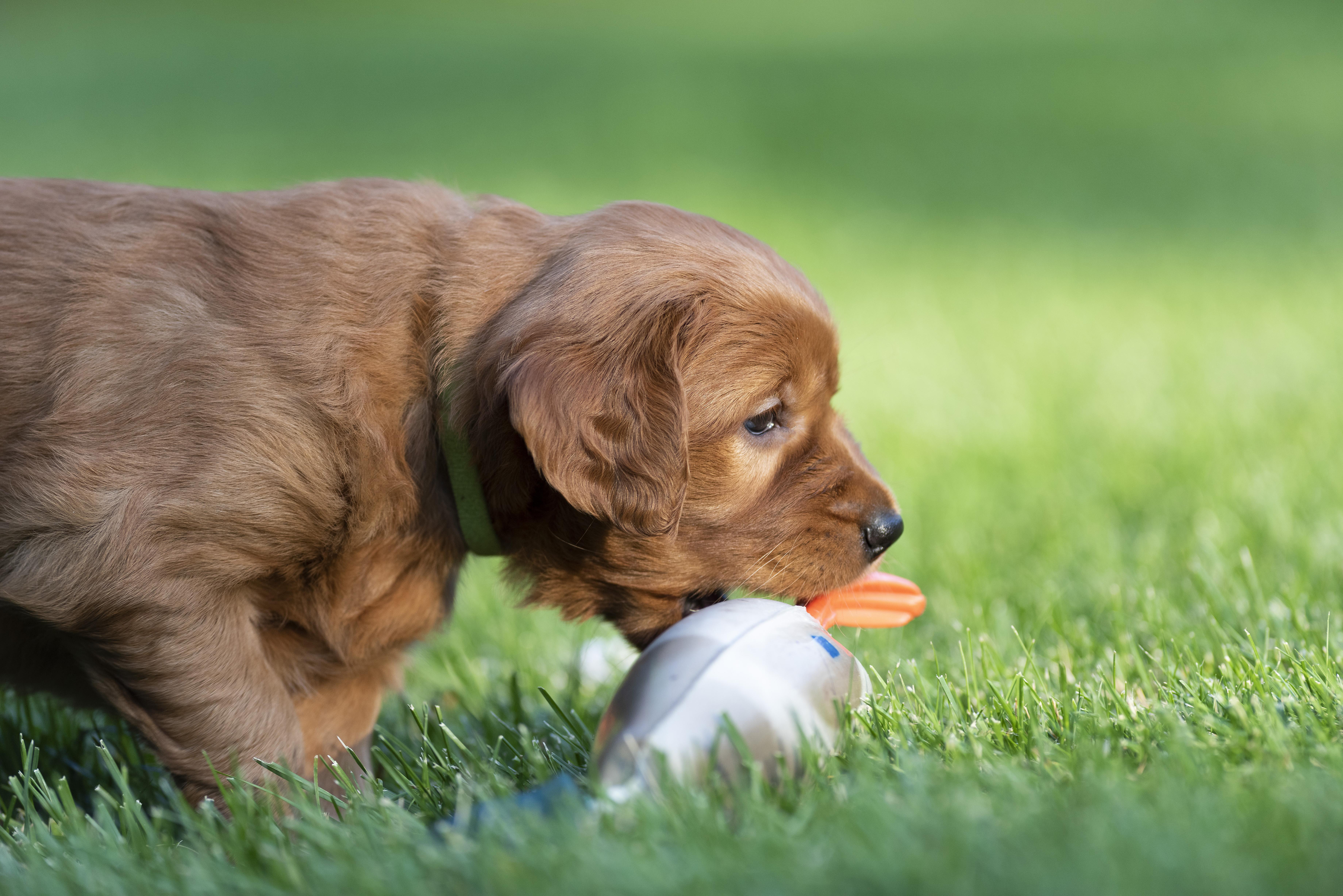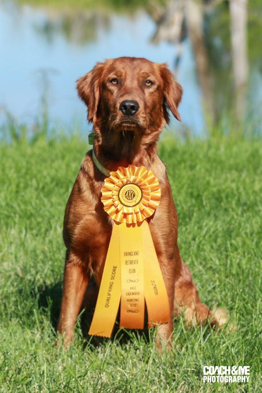 Ginger is a beautiful dark red golden. She is athletic and loves to hunt and retrieve. She is a great house dog and lives with a two year old little boy as her buddy.