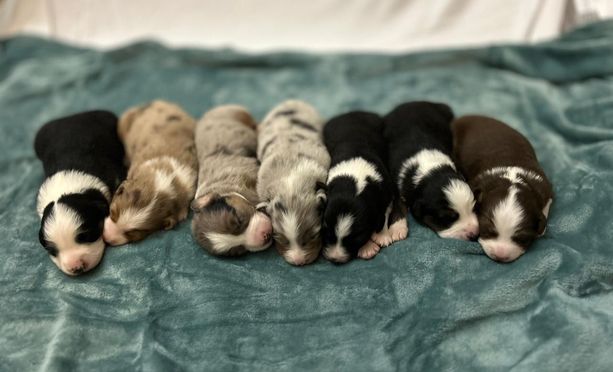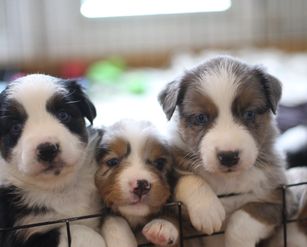 Our puppies include red merle, blue merle, black tri-color, and red tri-color. Colors will vary depending on the parent dogs.