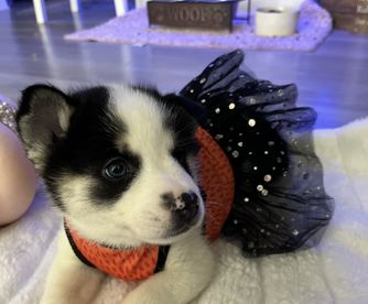 We got our first Pomsky 6 years ago and feel in love with the breed. Winter was our pet and we took her everywhere . We decided to get a friend for her and they became best friends and we built our breeding program around their love.