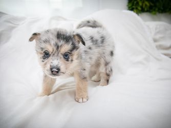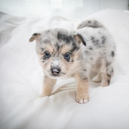Our puppies include wolf sable, white, black and white, and merle. Colors will vary depending on the parent dogs.