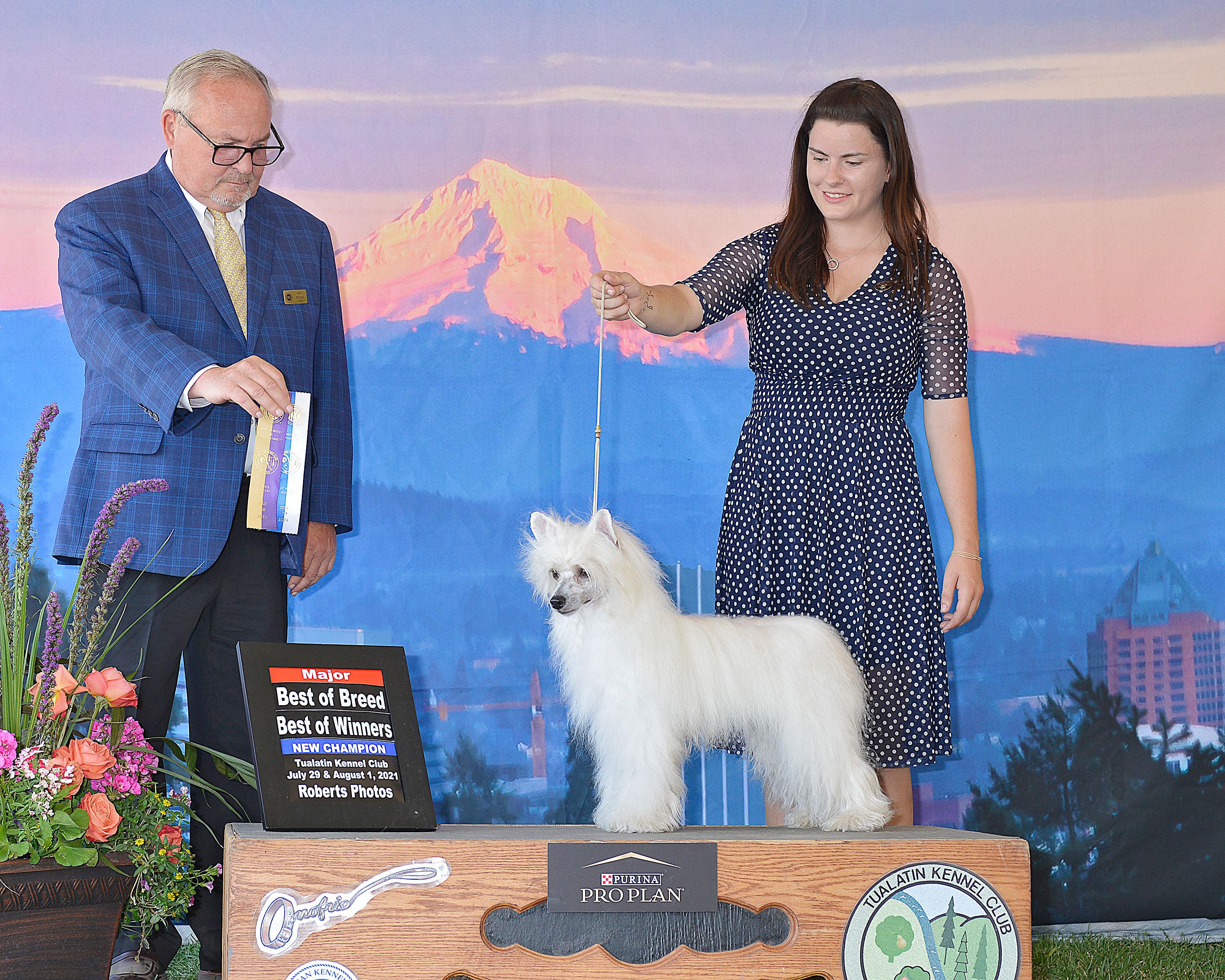 Happy is a male Chinese Crested. Carefully selected as a great representative of his breed, Sheri decided to make him part of their program. Sheri has passed Good Dog’s screening process, which involved a review of their breeding practices, environment, and the mental and physical health of their dogs.