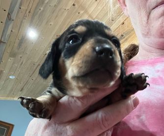 From the beginning of our search for our new addition, Eva Mae was helpful and quick to respond. We can't say enough about how wonderful our new puppy is. He is healthy, well adjusted and as feisty as can be. I would recommend Never Land Dachshund to anyone looking to add a new puppy to the family. Thank you so much Eva Mae for making our experience so wonderful and easy!