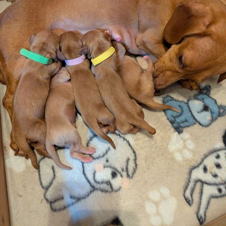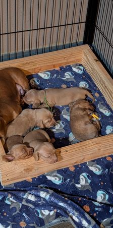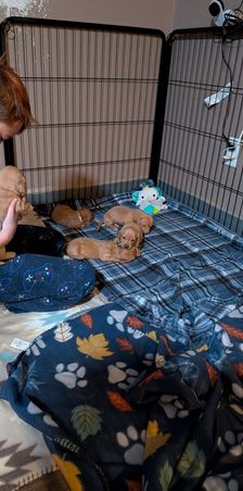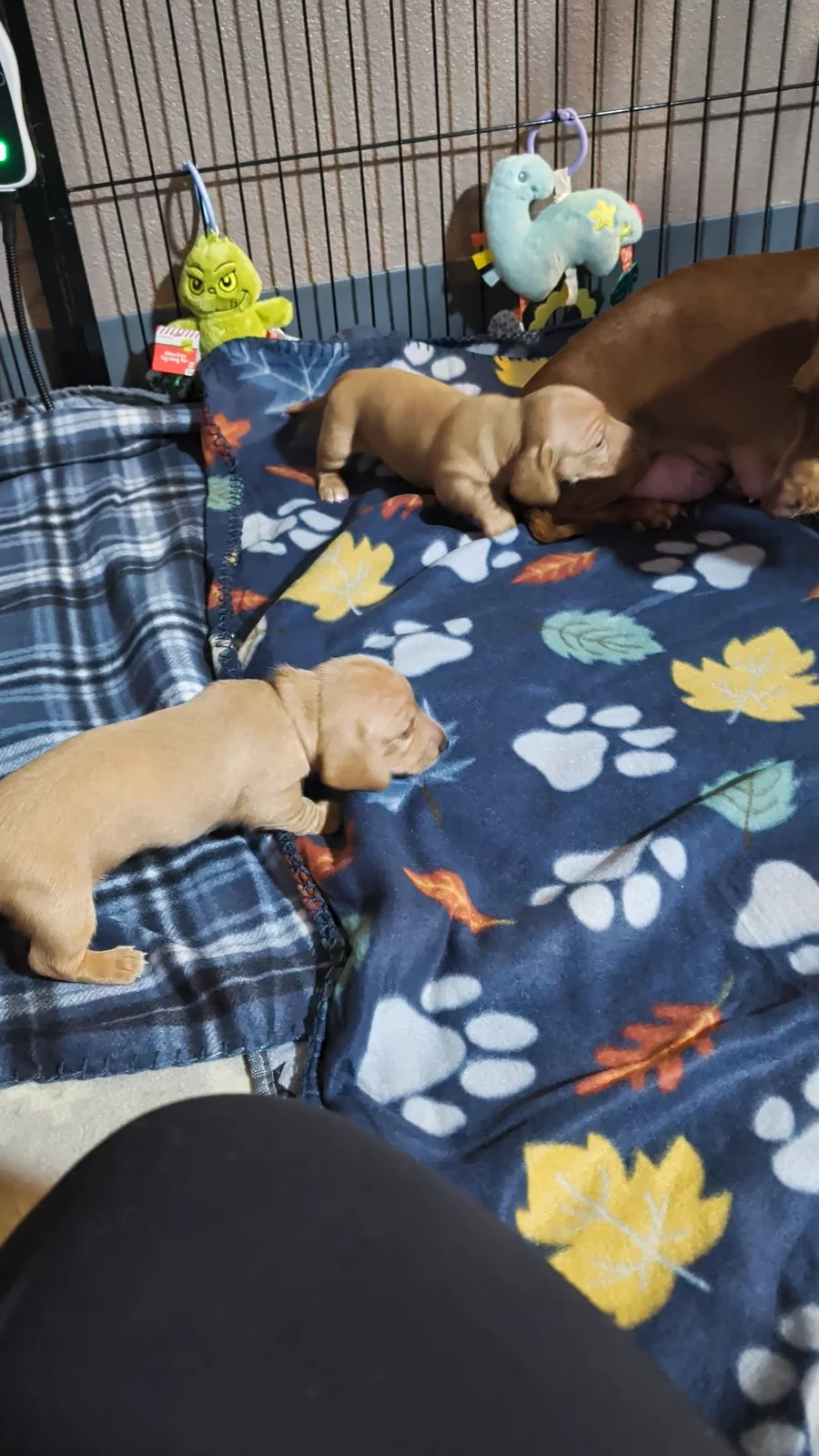 After purchasing our first dachshund for our son, we fell head over heels for the breed, and I’ve been following a mentor for 3 years, I’m just starting out, but I’ve successfully whelped 3 litters on my own already! I keep learning and growing everyday! My goal is to make the best babies for your families!