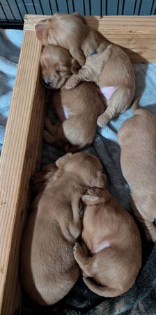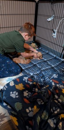 Babies whelping box got taken away today, they are exploring their new space 🥰
