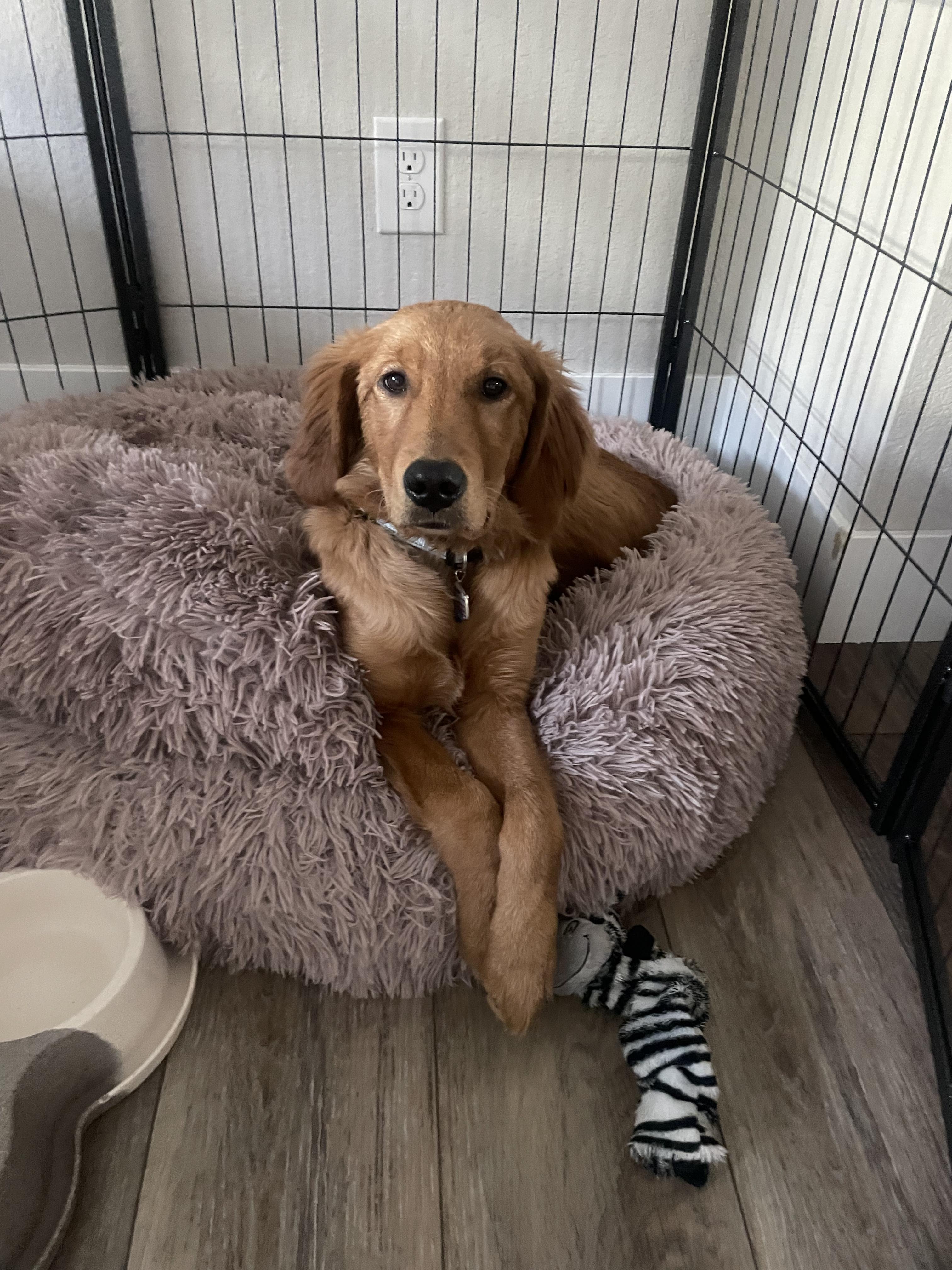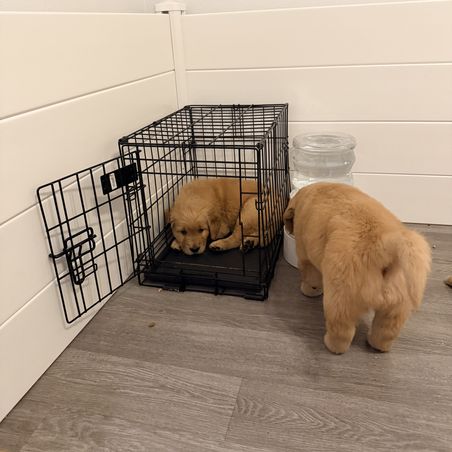 Introducing the crate is one of the things that we consider extremely important! The crate is an amazing tool when it comes to training a new puppy. It makes potty training so much easier because a puppy’s instincts are to not go to the bathroom in their “den”. It is also a great place for your puppy to feel safe when they are feeling anxious, overwhelmed, or overstimulated. Plus it is amazing to have a space for puppy to be when you can’t supervise them. It keeps them and the things they would otherwise chew safe. I know crating your pup gets a lot of negative feedback these days, they say it’s a “cage”; but it is 100% the opposite. Crate training, done correctly, will provide your pup with a safe place and you peace of mind knowing your pup is safe and happy ❤️