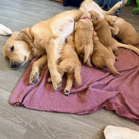 I’ve grown up with animals all my life but when I entered motherhood, I found myself on that journey alone. For the longest time, I didn’t have the time to give to an animal because I was being a full time single mom. Now that my daughter is 15 and soon to be on her own, I find myself with a lot more time, energy and needing something to dote and love on. I had been considering getting a dog for a while and knew I wanted a golden retriever so I started my search. I found Mikayla. My experience with her exceeded all my expectations. She is invested. She responded to all questions. She offers advice and when it was time to pick my puppy, she offered advice on which puppy she felt would suit those needs based on her and her family’s interactions with the pups . She gave her advice with different options within the litter of pups and was open and honest about which would be the best fit. This is the first time I have ever been able to pick a puppy, I’ve only ever chosen from our local animal shelter and that was a good experience, but this one superseded all my experiences. I am so in love with my pup. She came into my life at the most perfect time and she is so perfect for me. She checked out perfectly at her first vet appointment AND Mikayla sent her puppies home with some vaccinations to get them started. I am so happy and grateful for being able to have the opportunity to work with Mikayla and will recommend her to those who are looking. Regardless if you don’t really know what breed you want or if you ride for the GR’s, her puppies are top tier. It was just great!!! I cannot wait to watch my puppy grow and become the full grown amazing dog that she is destined to be.