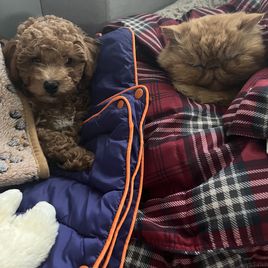 Bingo is a toy poodle. He loves humans and loves to cuddle. He always wears the expression as if smiling.