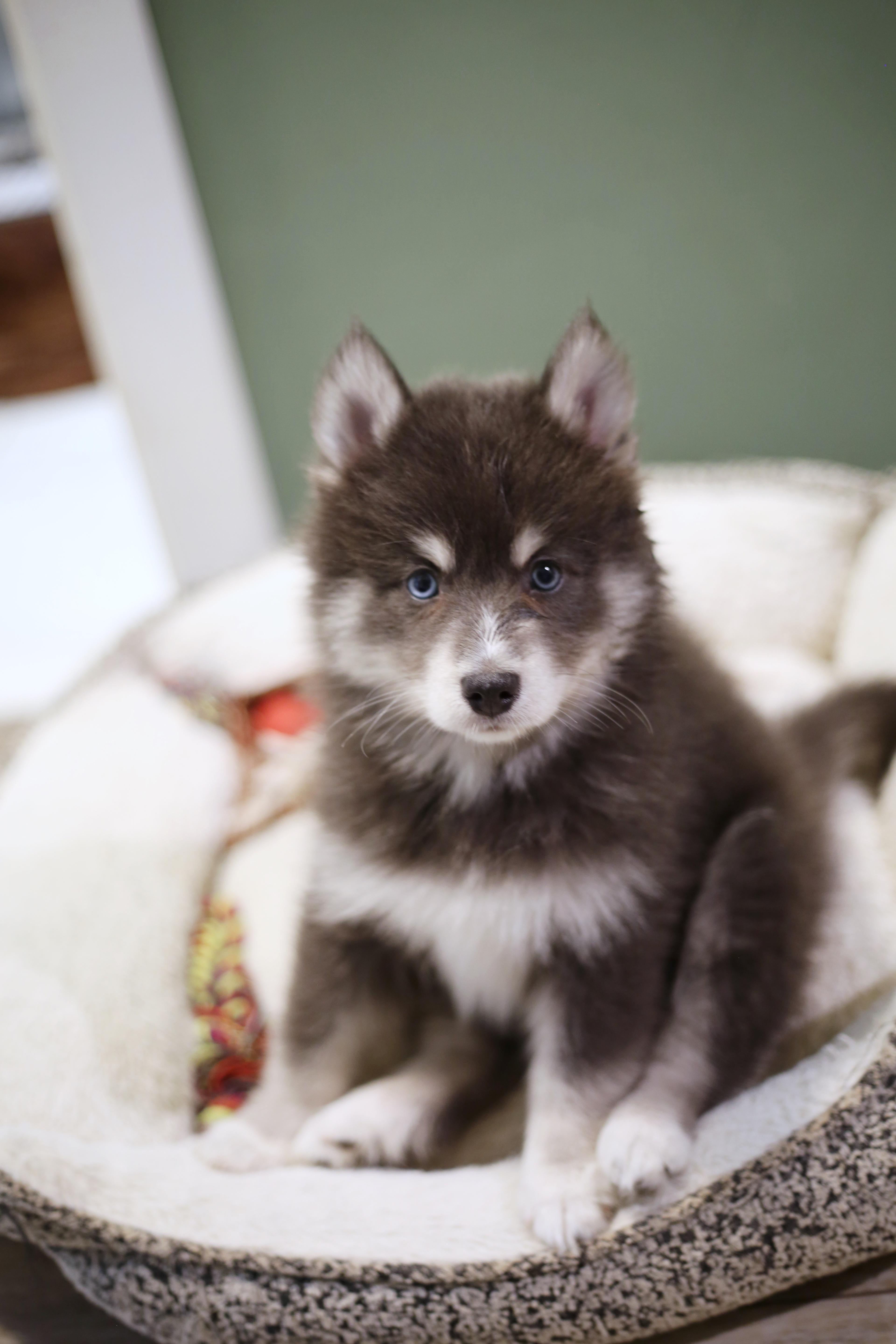 Zinnia is a female Pomsky. Carefully selected as a great representative of her breed, Abigail decided to make her part of their program. Abigail has passed Good Dog’s screening process, which involved a review of their breeding practices, environment, and the mental and physical health of their dogs.