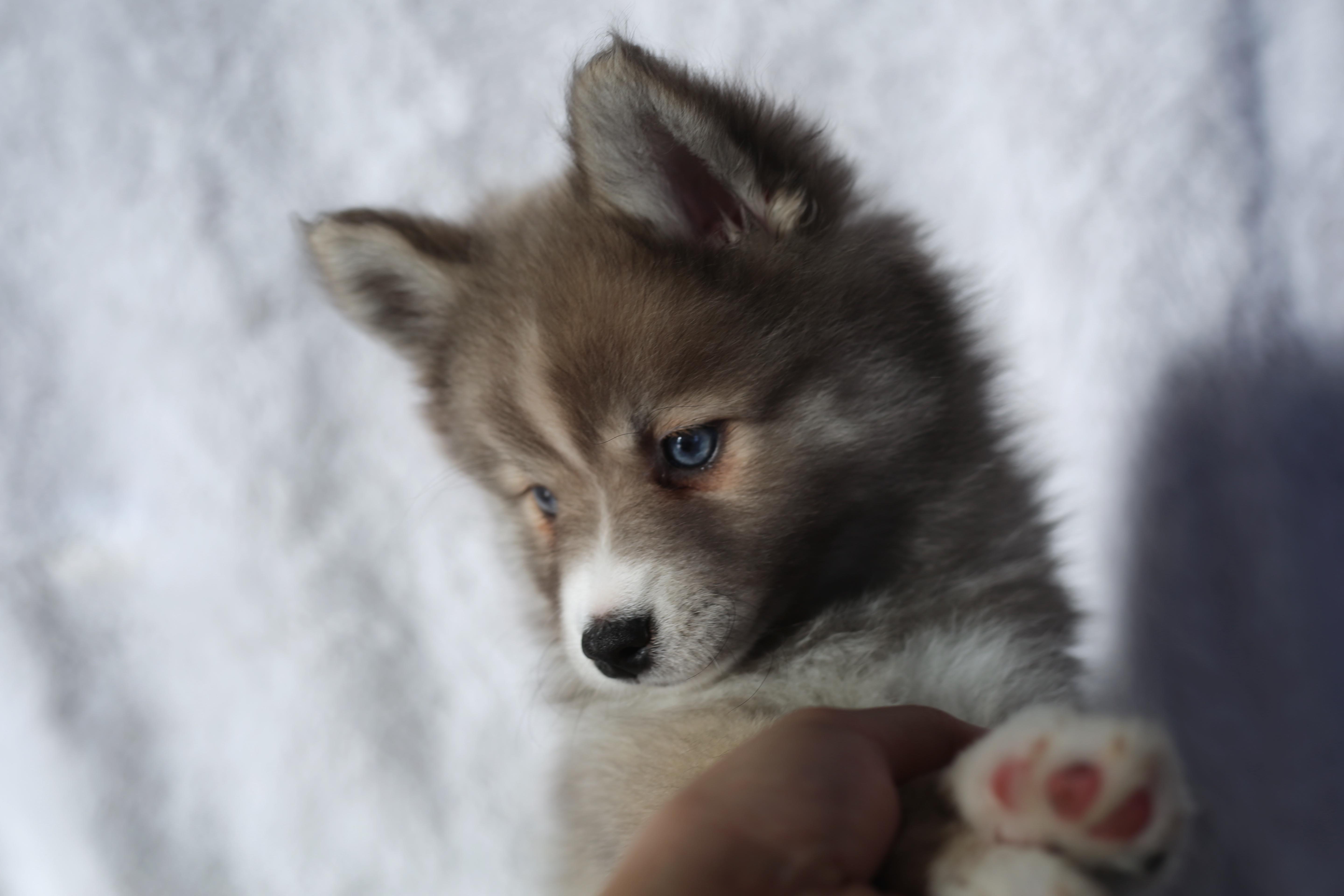 I'm Abigail B., the breeder behind New Gaia Pomsky located in Ohio. Our Pomsky pups are home-raised. We put a lot of care into socializing them so they can transition easily into their new lives. We treasure each puppy in our program and give them all the attention and care that we possibly can. We work hard so our puppies can leave our home with confidence.