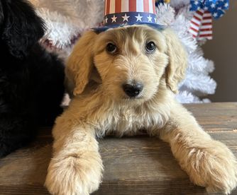 Goldendoodle puppies include cream, black, and parti. Colors will vary depending on the parent dogs.
