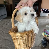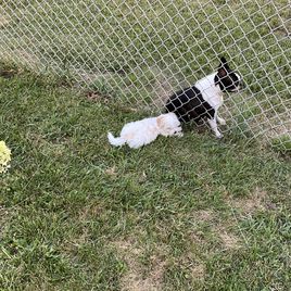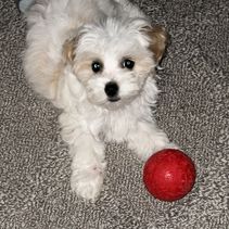 Maggie is a gentle and loving maltipoo. She loves to get dirty on the farm but also cuddle up on the couch for a long nap.