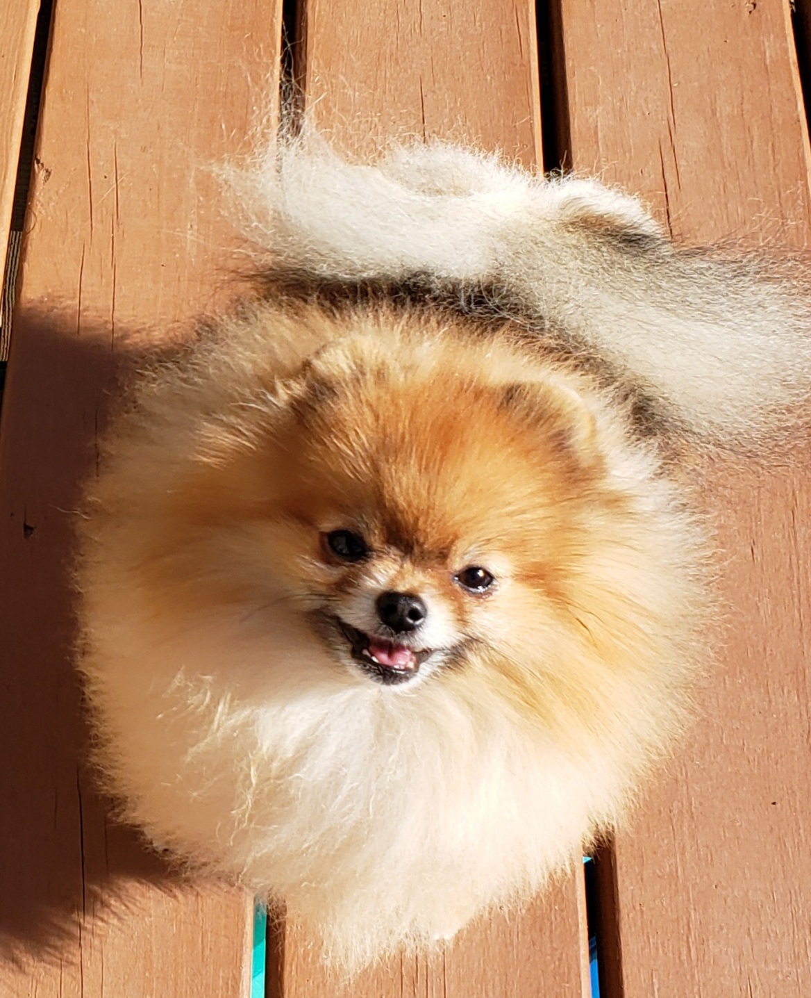 Breeze is a female Pomeranian. Carefully selected as a great representative of her breed, Corie decided to make her part of their program. Corie has passed Good Dog’s screening process, which involved a review of their breeding practices, environment, and the mental and physical health of their dogs.