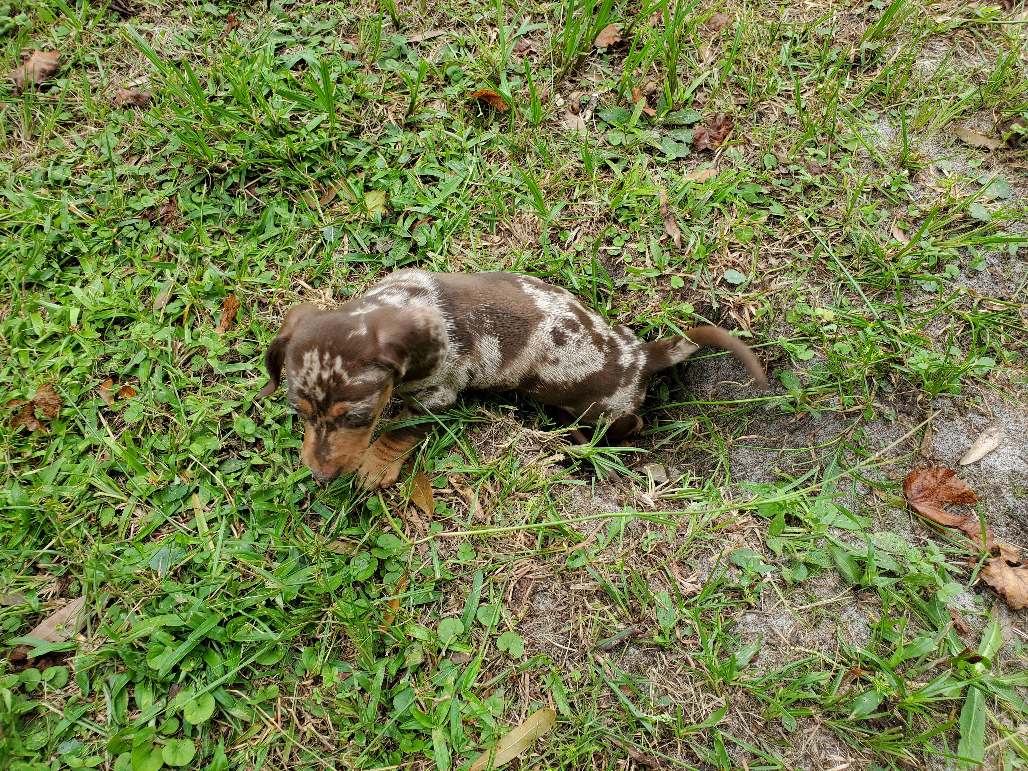 I have been around dog breeding my entire life. My father had an affinity for Dachshunds (or carpet sharks as he liked to call them). He would occasionally breed his which led me into it. After growing up, I got my own and wanted to run the best program I could. I will never claim to be done because there is always room for growth, but we do strive for nothing but happy customers.