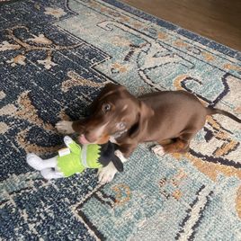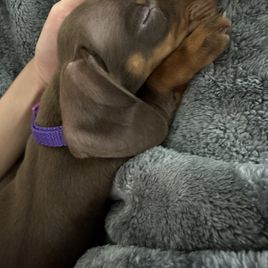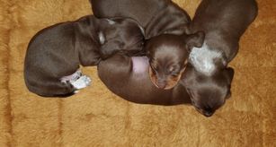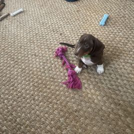 We're very satisfied with our new family member right from Newbern's Nuggets. I just surprised my wife with a female chocolate doxie for (late) Valentine's day, and she is happier than ever! Adam and Valerie were very nice to work with providing all details and information I needed and responding my messages very fast. I choose to pick up and they met me at the specified point right on time. Legit business and great breeders. They also provide a bag with vaccination history, toys and goods. Everything was perfect!