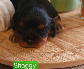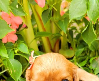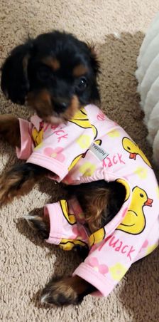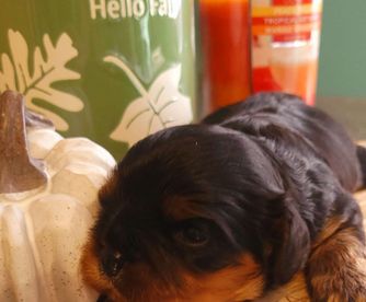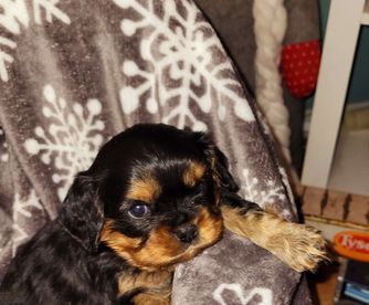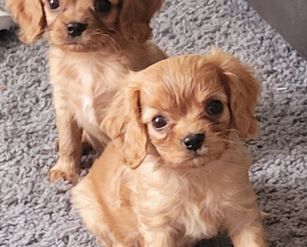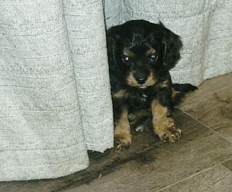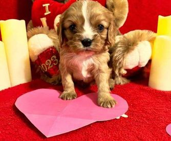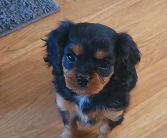Our Cavalier King Charles Spaniel puppies include blenheim, ruby, and black and tan. Cavapoo puppies include brown, blenheim, black and white, and black and tan. Colors will vary depending on the parent dogs.