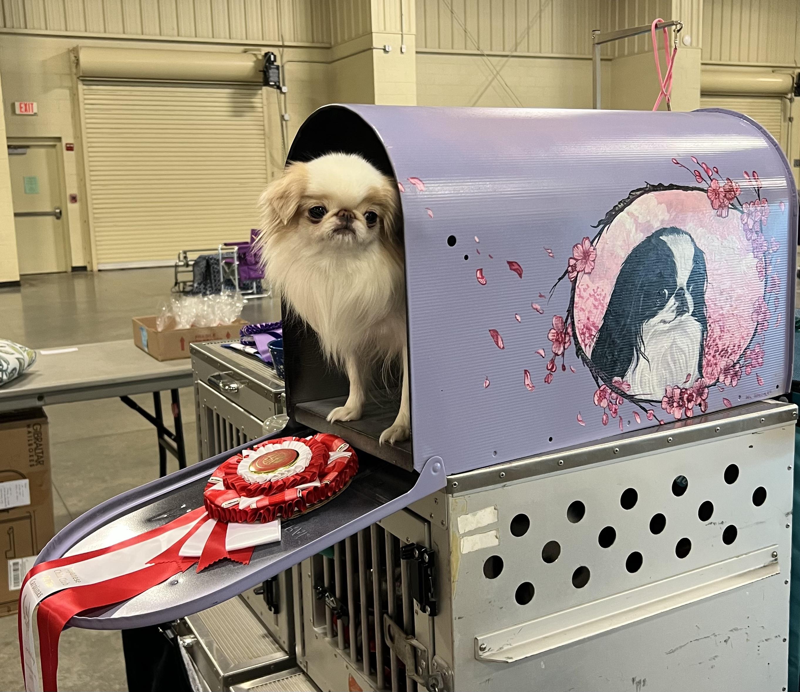 Hebi finished his AKC Championship in only 3 Japanese Chin Specialties which is the minimum of shows required. Quite a feat! He is a Grand Champion, has all health requirements and DNA clear from over 250 anomalies by Embark. Hebi is the total Chin gentleman, sweet, kind, well socialized, completely trustworthy house trained and extremely smart. He passes these wonderful characteristics to his puppies. Hebi has produced all colors including mahogany sable.