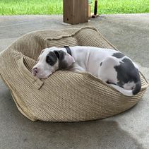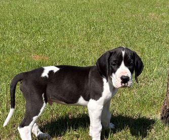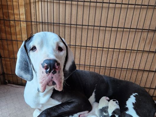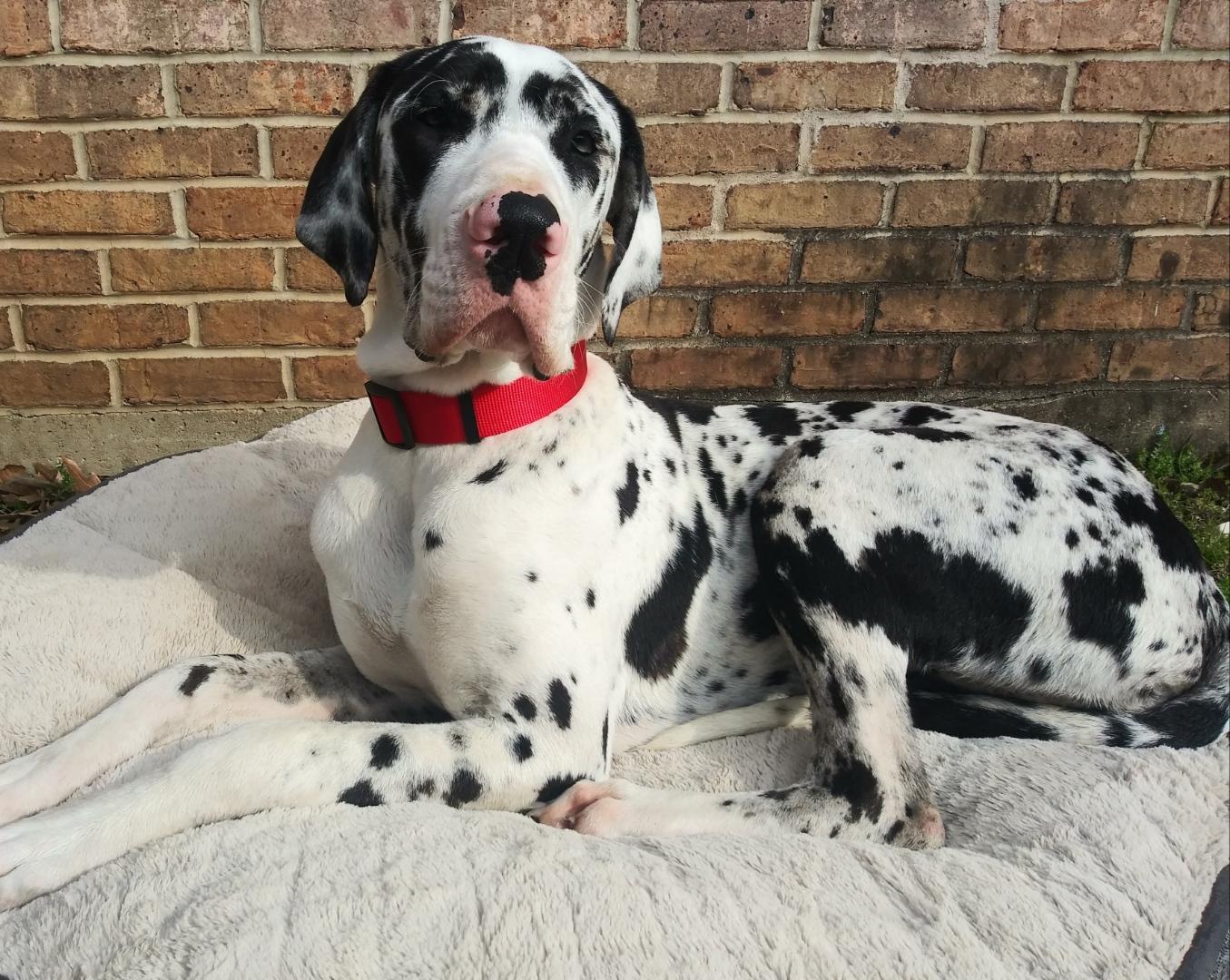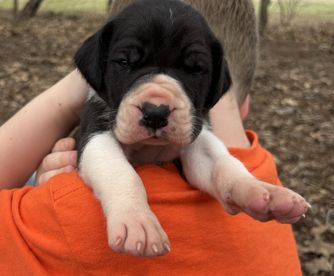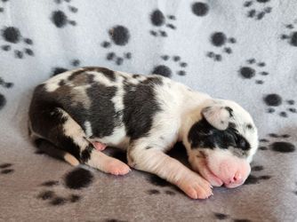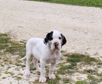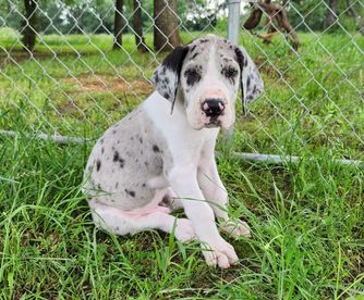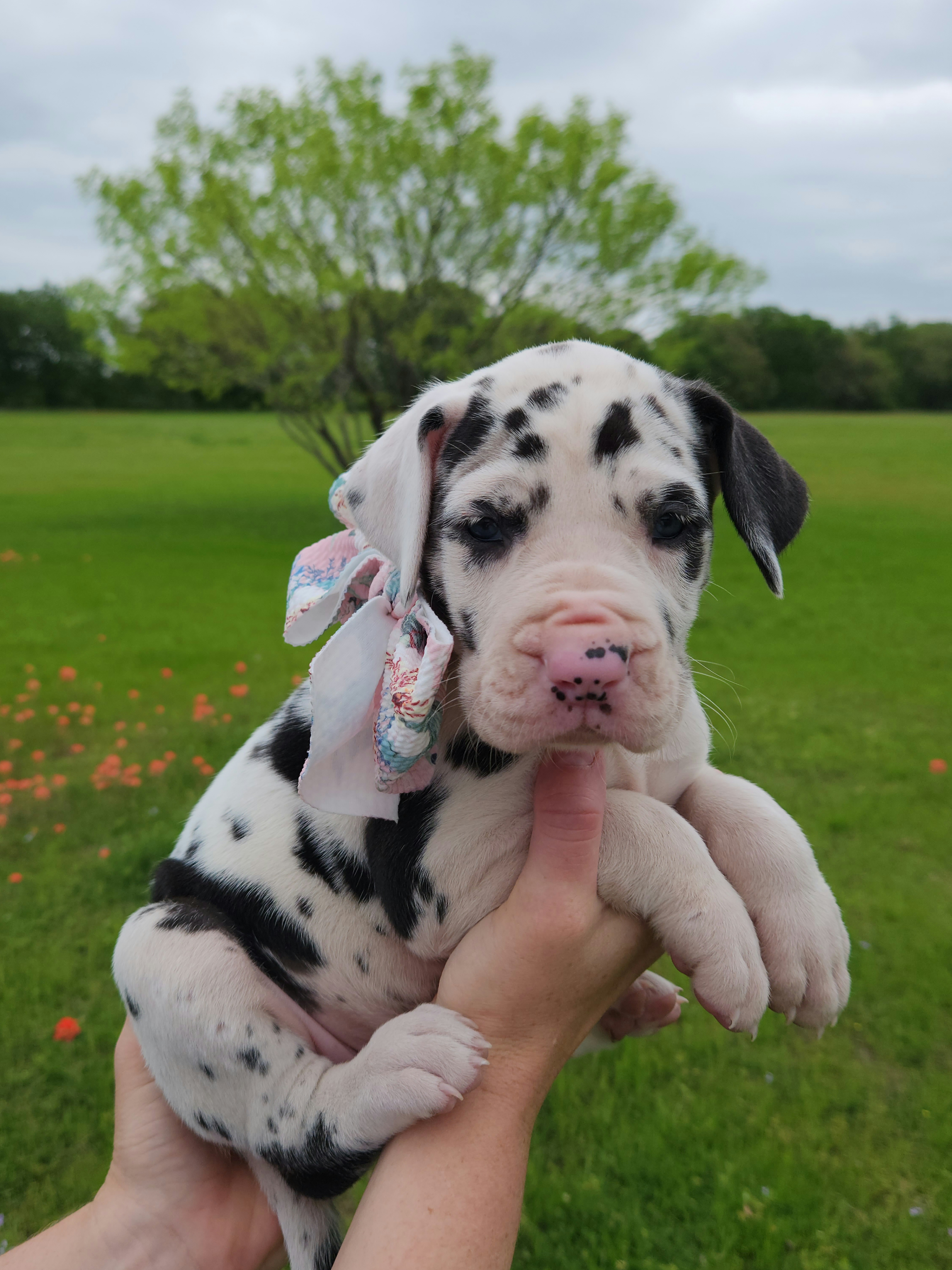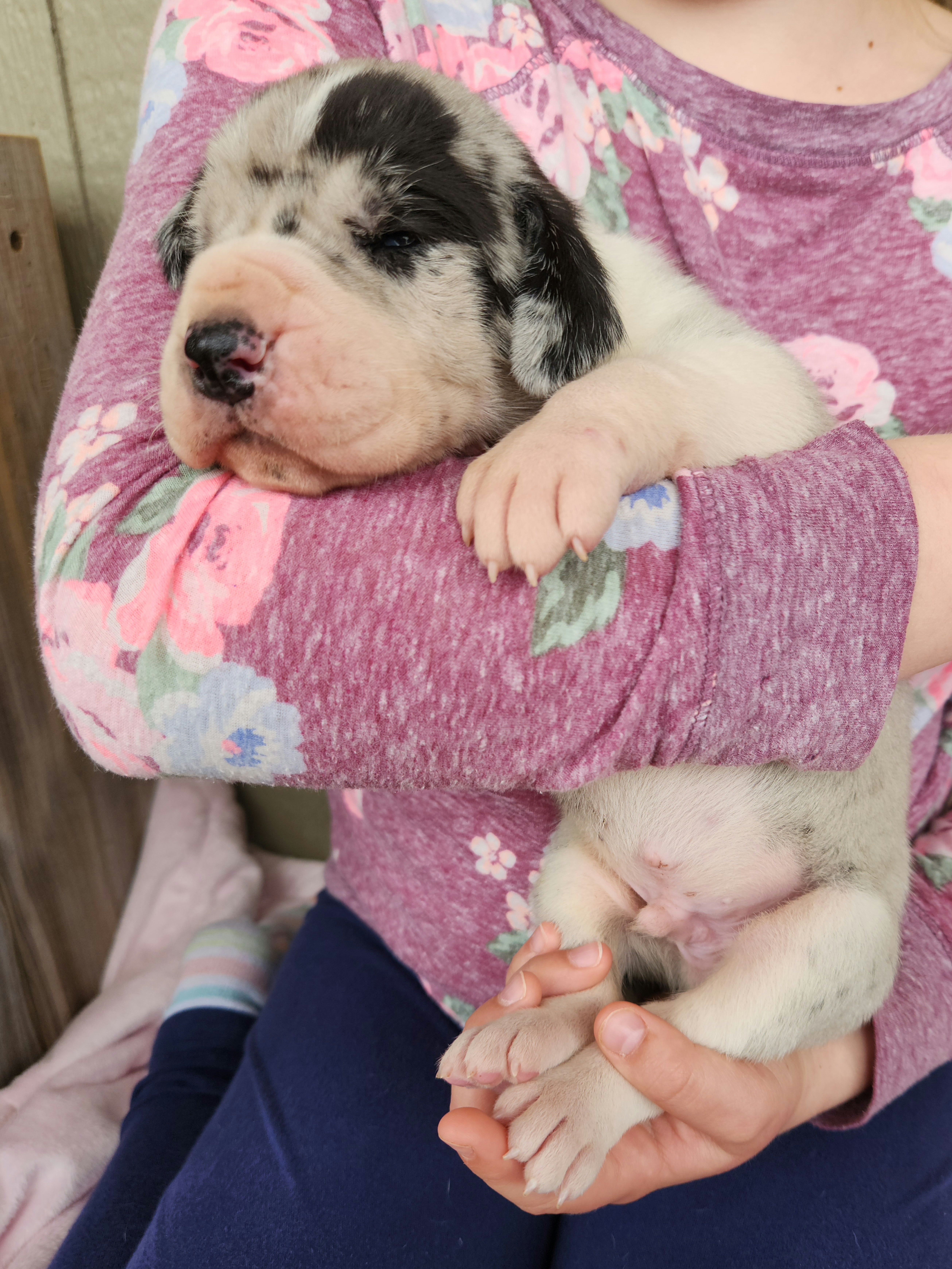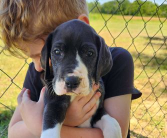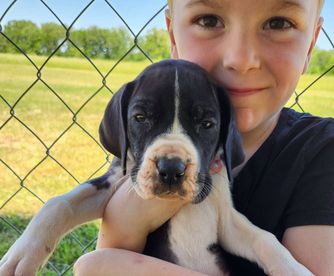 I'm Megan C., the breeder behind Nick and Megan's Danes located in Cleburne, TX. Our dogs are bred to have all of the qualties desired in the Great Dane Breed so that they will be the perfect pet for your family. We follow the AKC requirements for approved color breeding and health test all of our Danes. Our Dams and Sire are carefully chosen to promote loving and gentle temperaments. We have 5 children and we live on 26 acres in Cleburne, Texas. We raise our Danes as a family and dedicate our time and love to raise happy, healthy puppies. We begin potty training at 5 weeks old. Puppies come home with 2 year genetic health guarantee and AKC registration. They are dewormed at 3, 5, 7 weeks old and come home up-to-date on vaccinations.