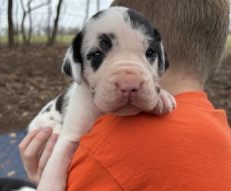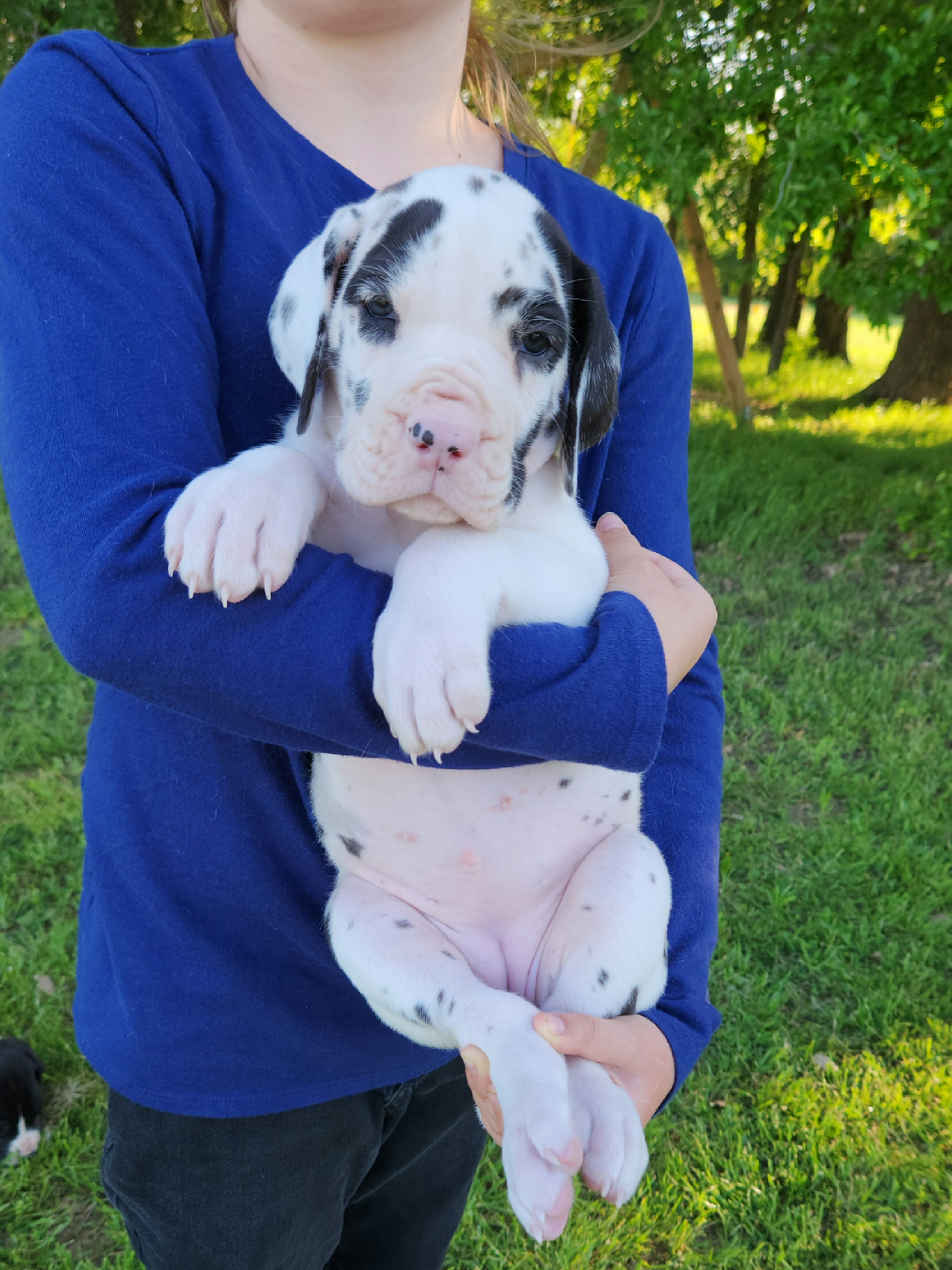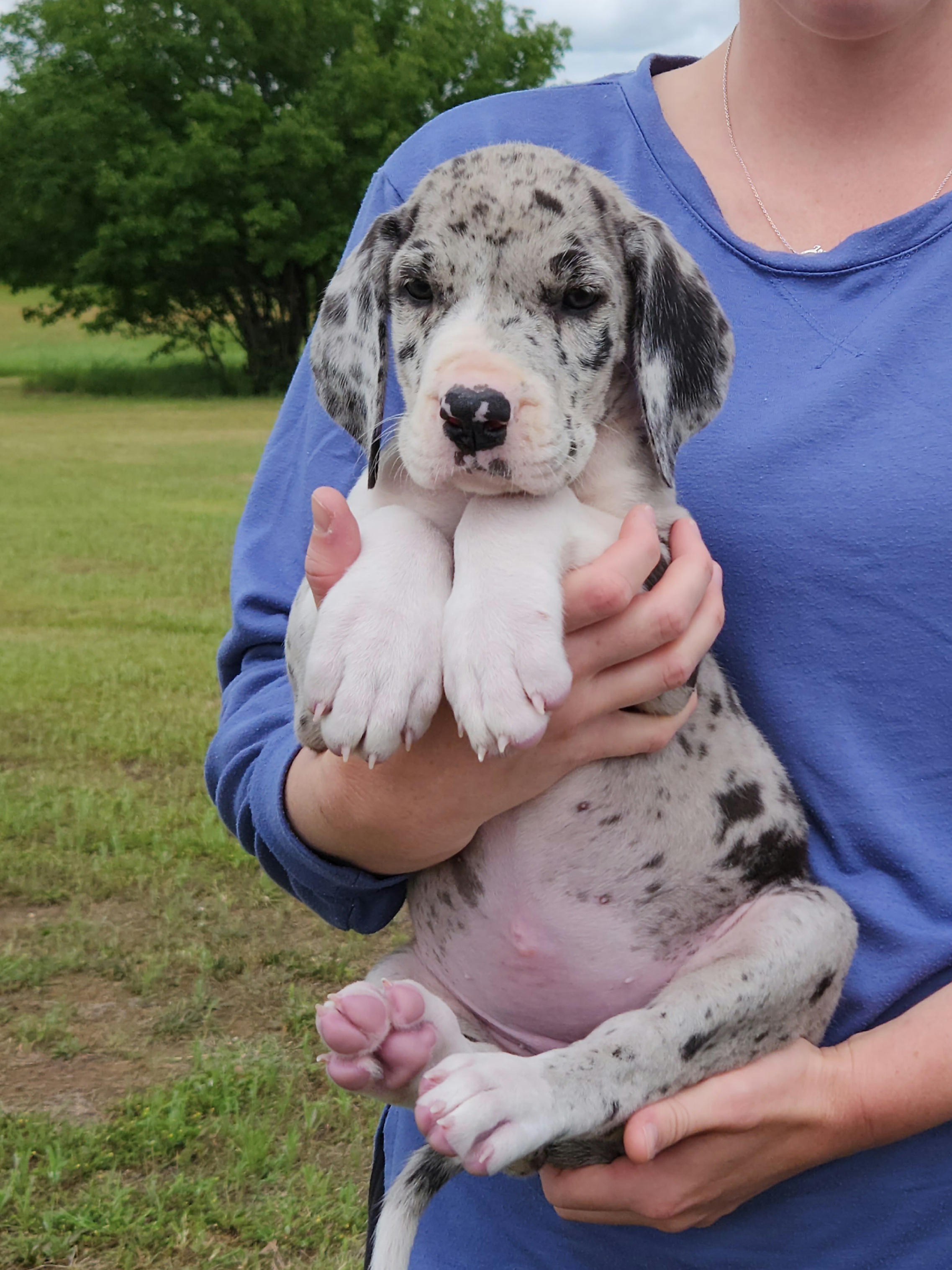 Megan was great to work with and provided a lot of good information! Our new pup has a great temperment, is very healthy, and everything I could have hoped for. High quality Danes!