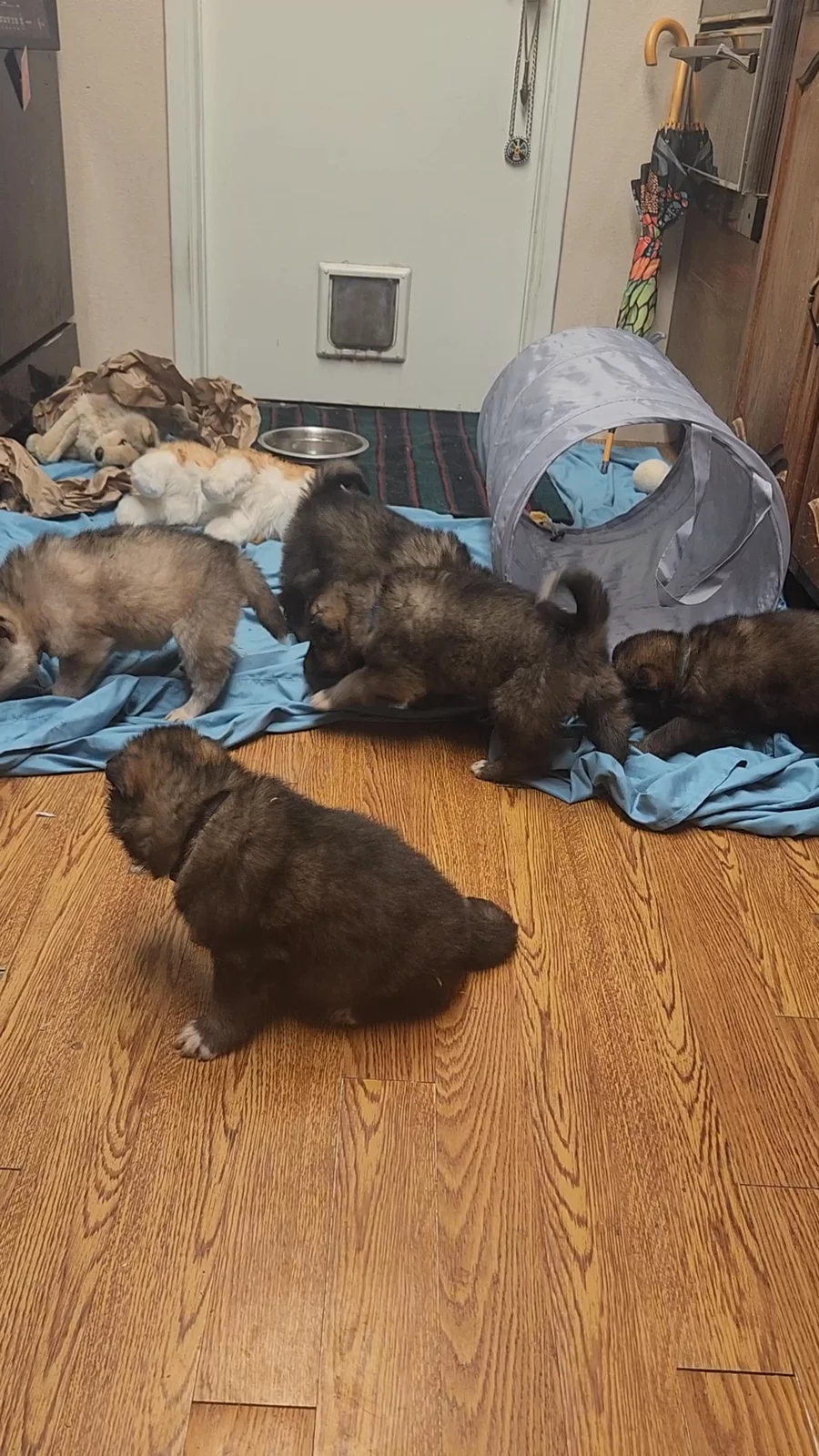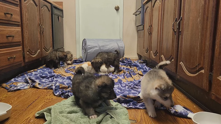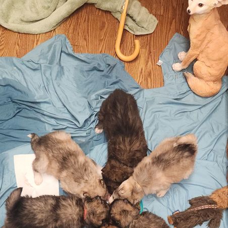 The wolf litter is learning how to sit..sort of..