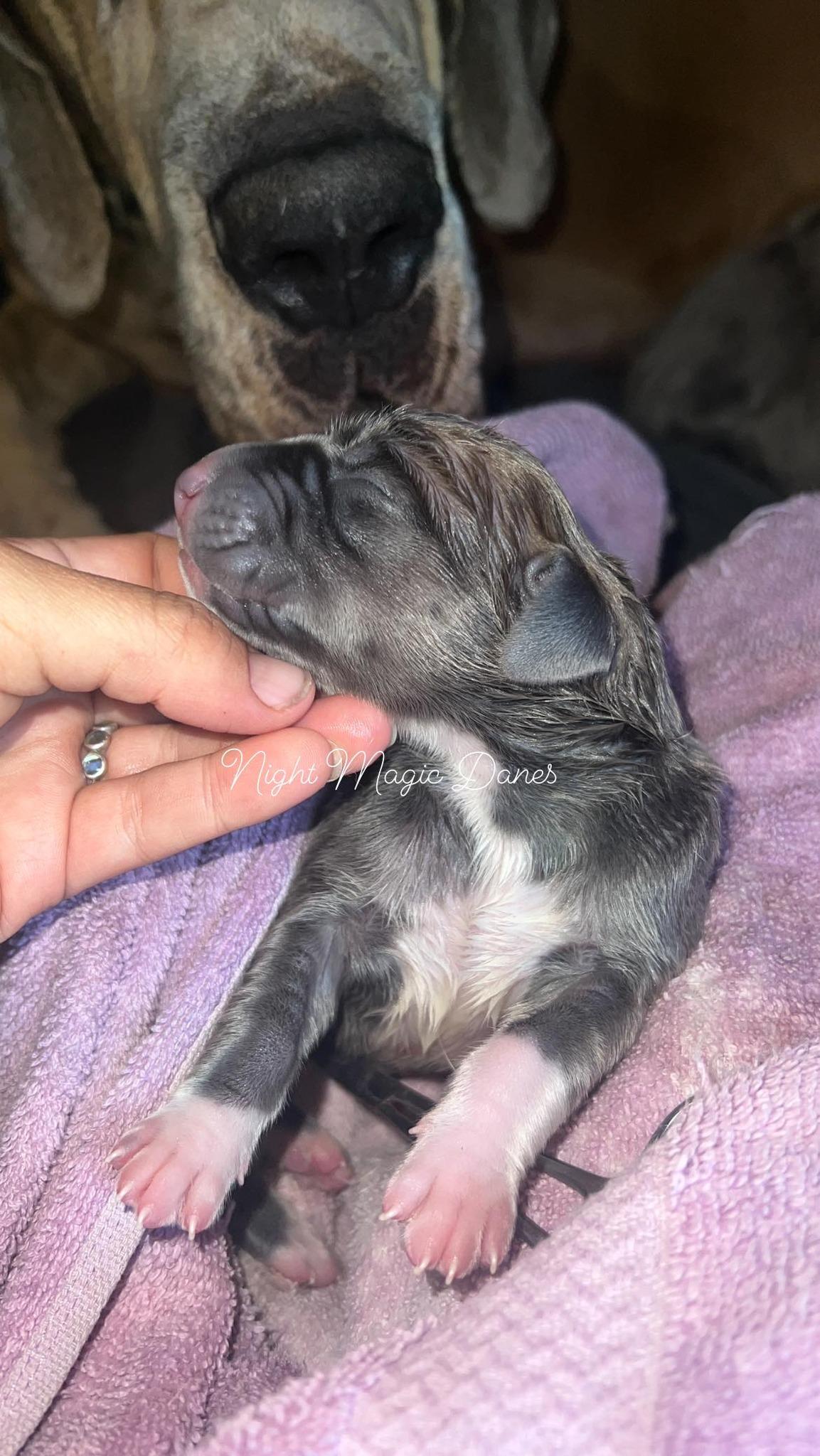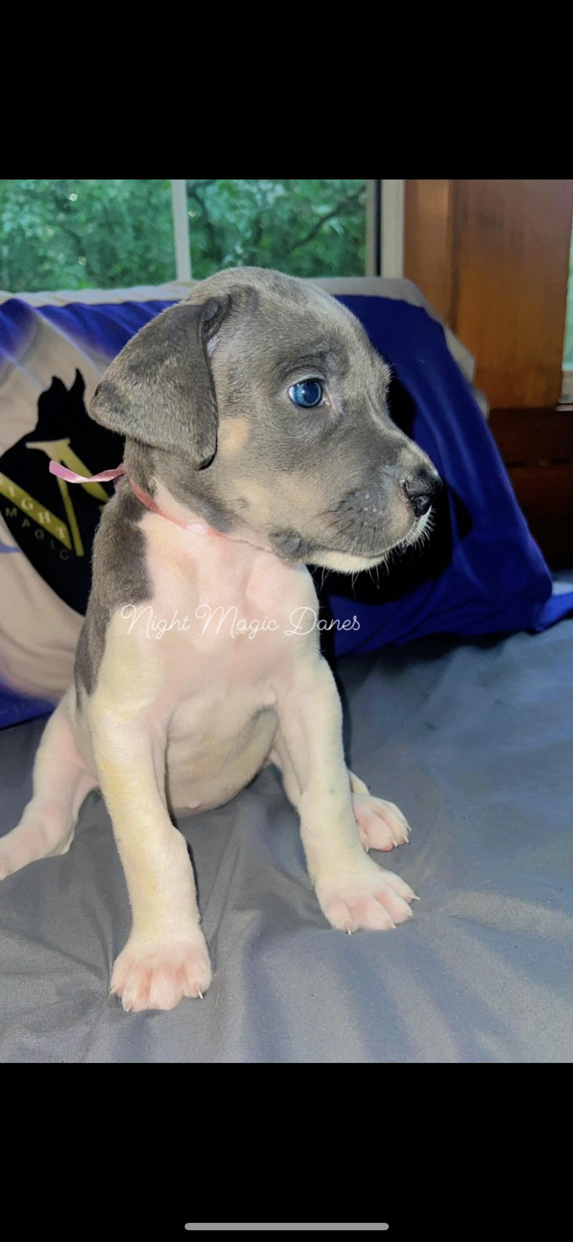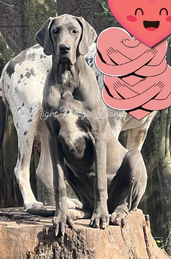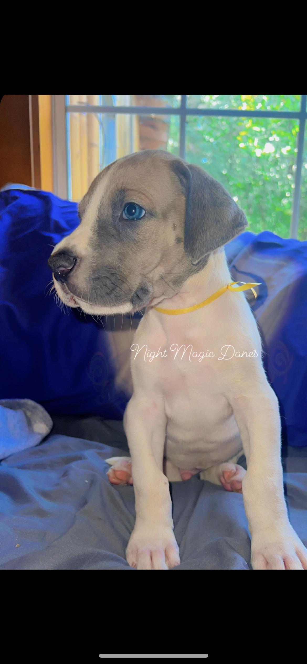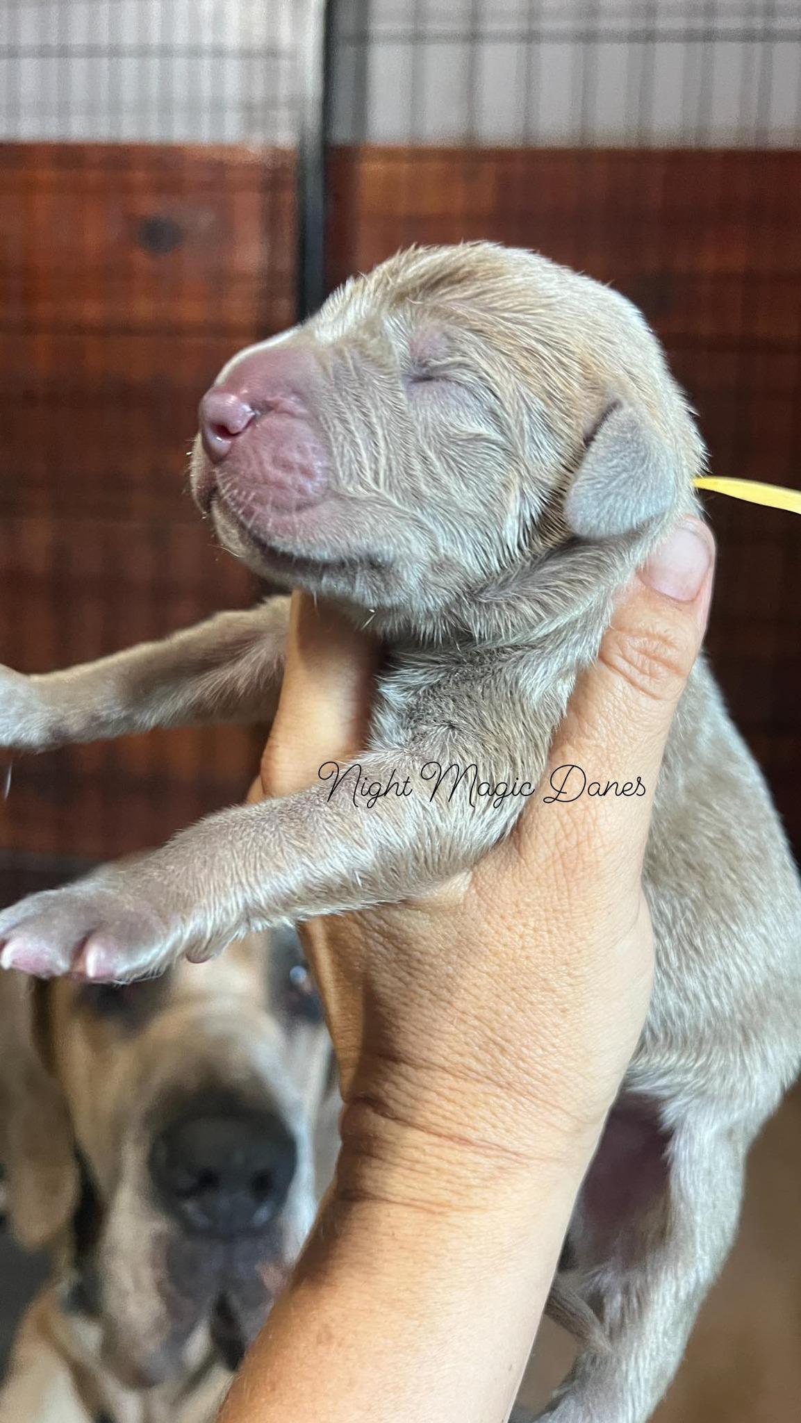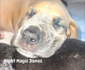 I'm Ann S., the breeder behind Night Magic Danes located in Georgia. Pups are raised underfoot & are started with early learning lessons at just 4 weeks old and by 8 week are mark trained to sit and wait for food as well as being fully potty training to a puppy door. Many of our pups go on to be therapy/service dogs because of this.. so don't miss out 229/224/2591.