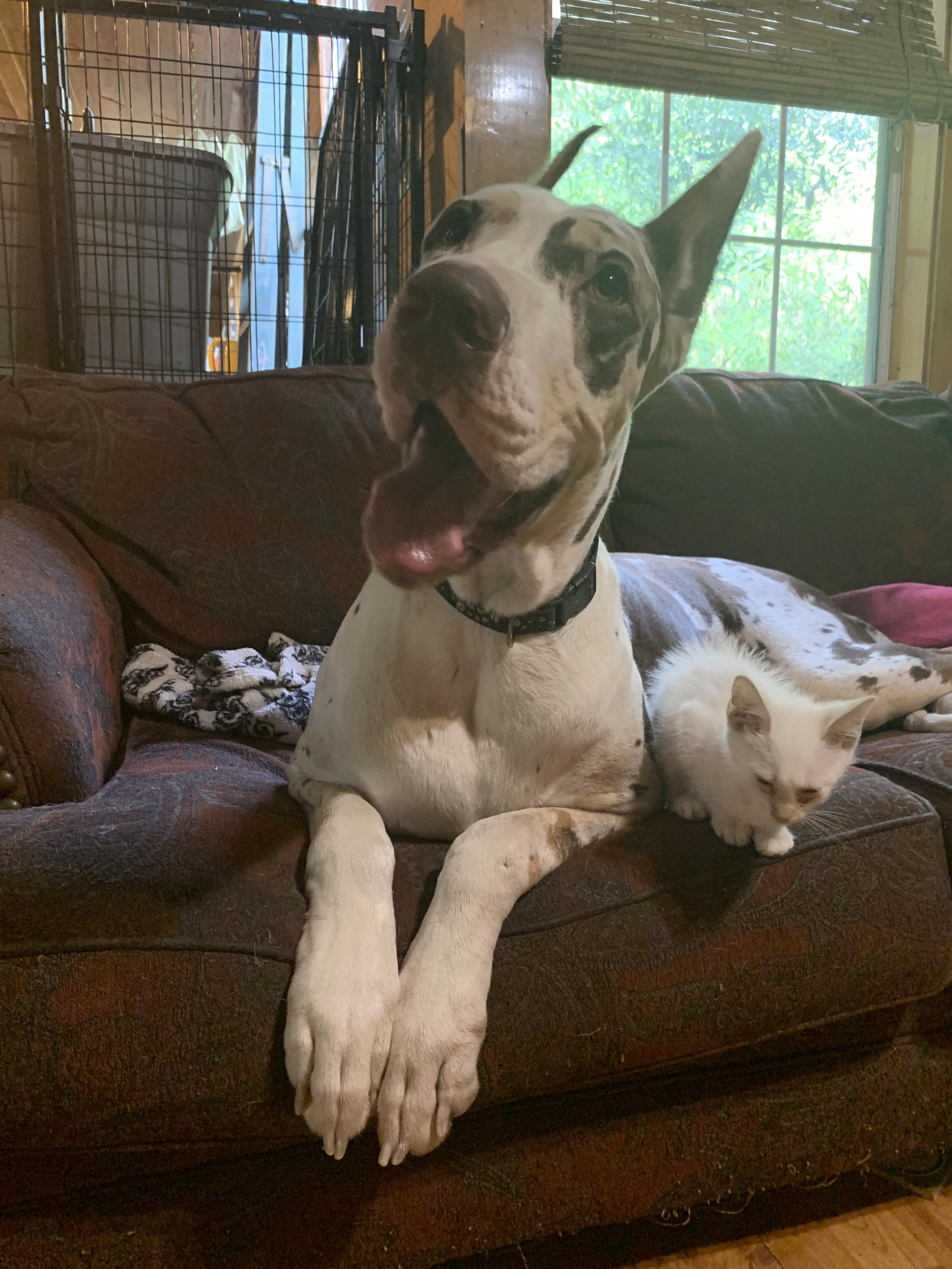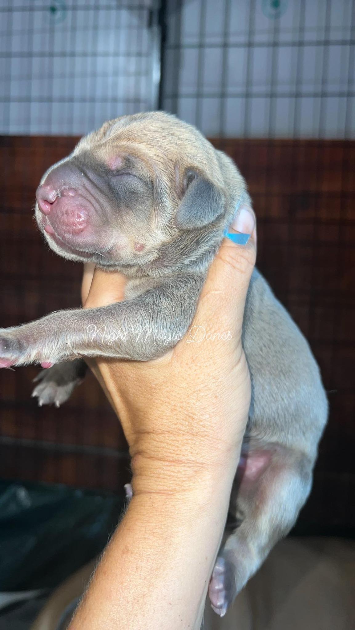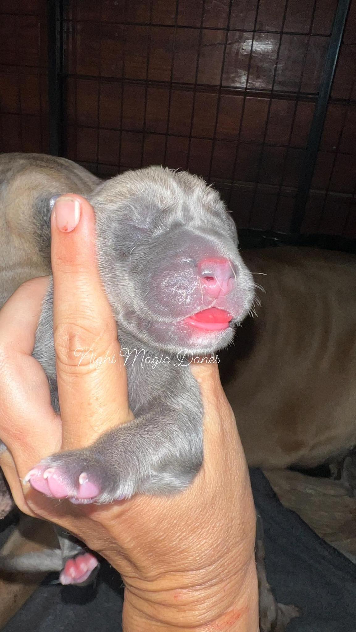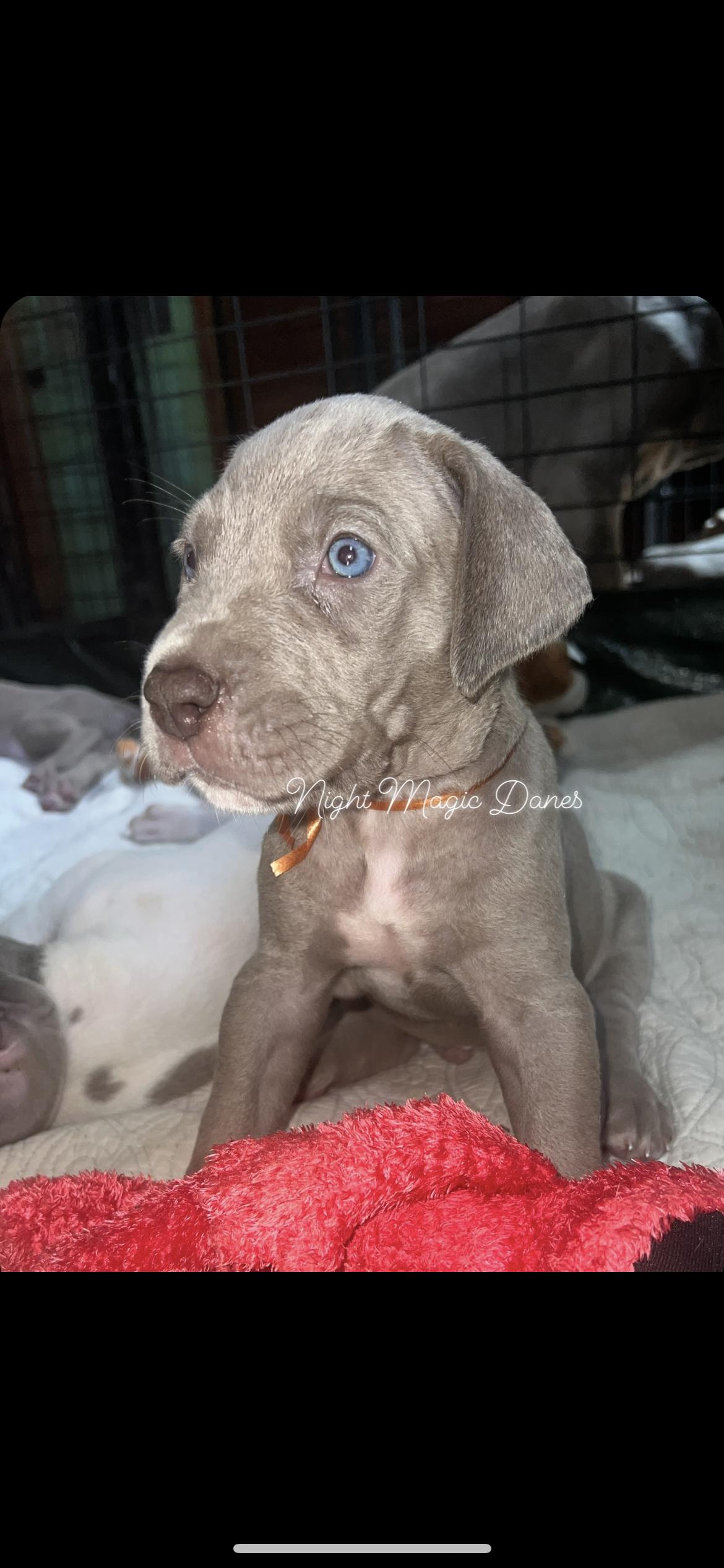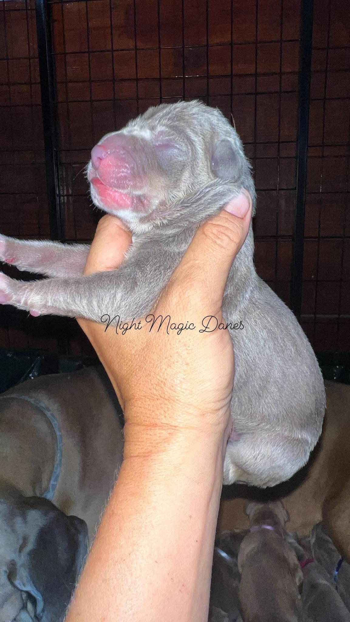 I'm Ann S., the breeder behind Night Magic Danes located in Georgia. Pups are raised underfoot & are started with early learning lessons at just 4 weeks old and by 8 week are mark trained to sit and wait for food as well as being fully potty training to a puppy door. Many of our pups go on to be therapy/service dogs because of this.. so don't miss out 229/224/2591.
