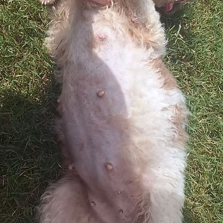 Nine Pines Poodles reports to performing the health tests below on their breeding dogs. Ask your breeder about the tests performed on the parents of your litter. Learn more about health testing for Moyen Poodles.