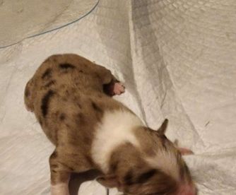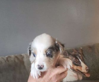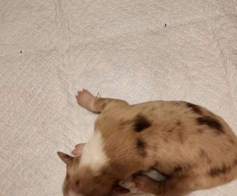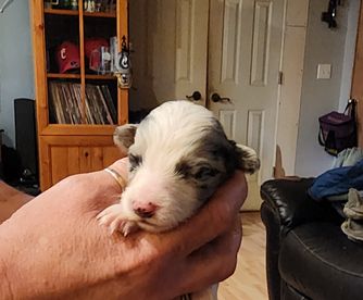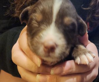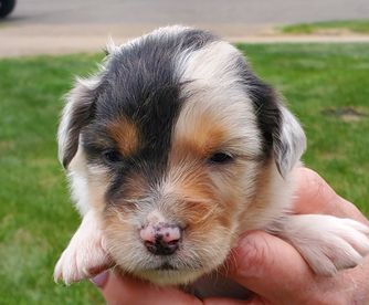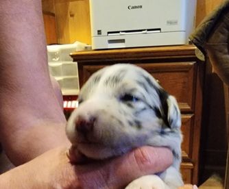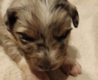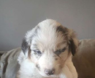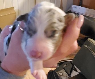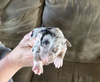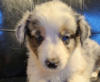 Our puppies include red merle and blue merle. Colors will vary depending on the parent dogs.