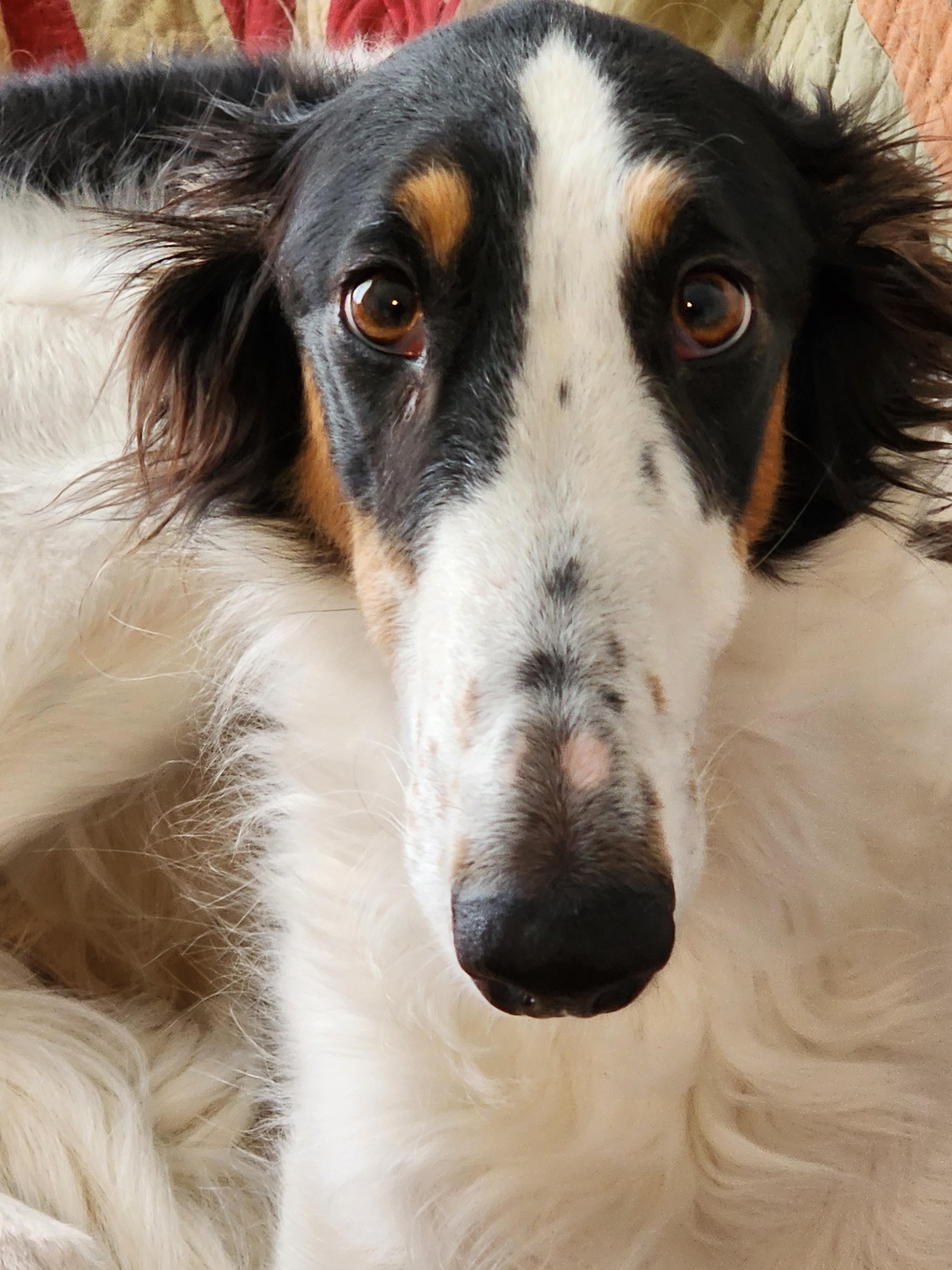 Krishna is a beautiful Borzoi female whose father is my NZ import NZCH US Grand Champion Gracelands Ocean Ruler (Pasha).