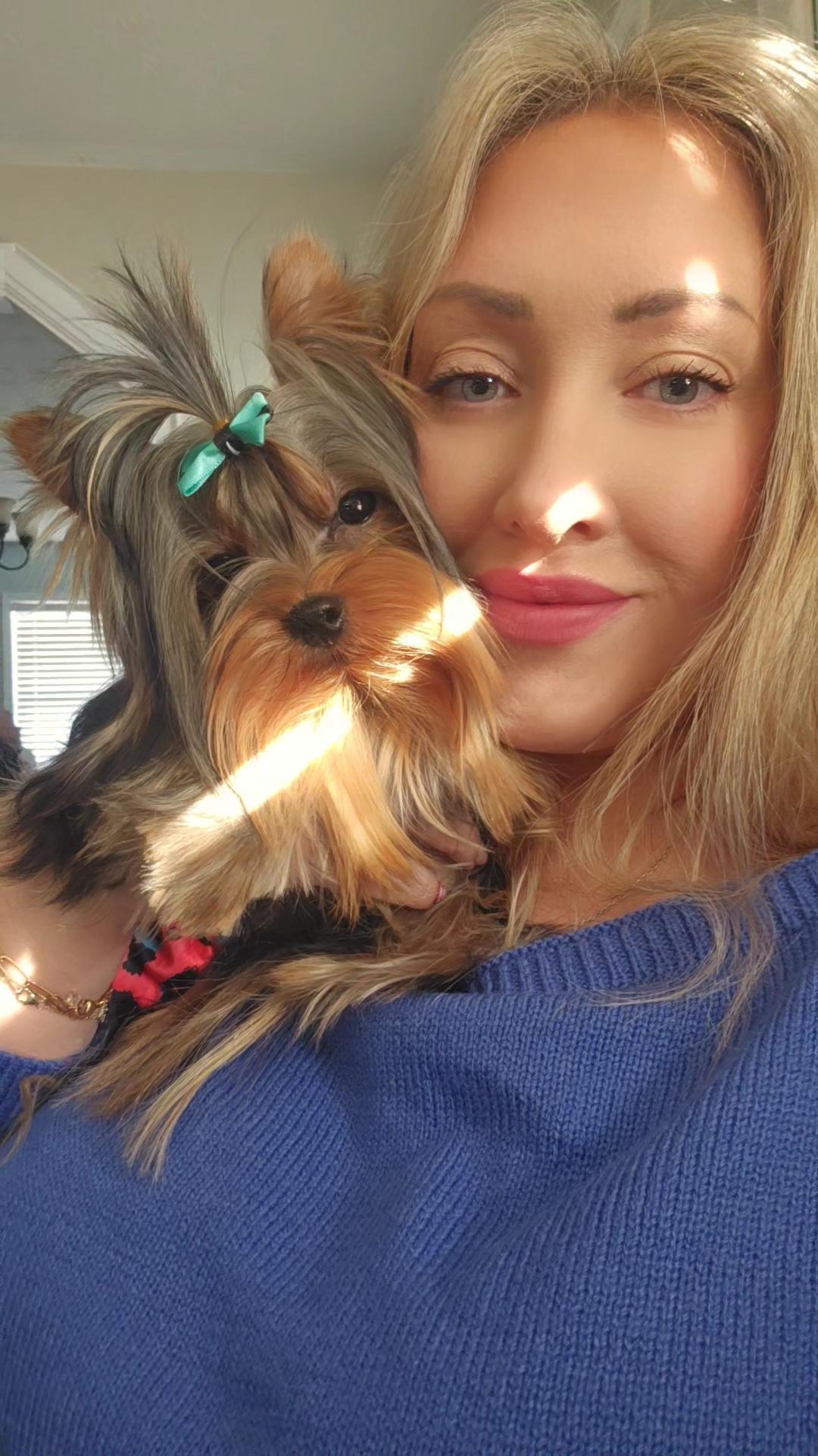 Mila is a female Yorkshire Terrier. Carefully selected as a great representative of her breed, Sarah decided to make her part of their program. Sarah has passed Good Dog’s screening process, which involved a review of their breeding practices, environment, and the mental and physical health of their dogs.