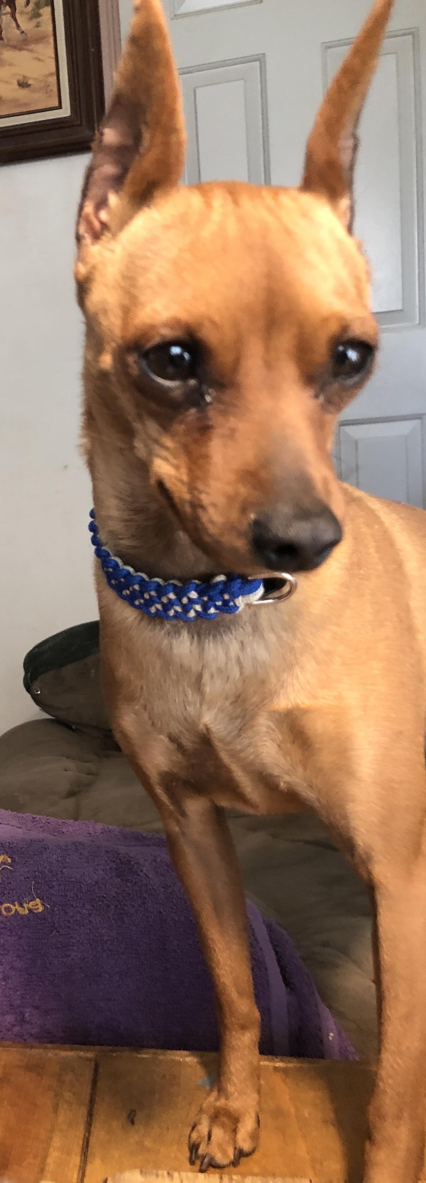 Bash is an outgoing and happy boy! He has deemed himself the "King of Nizhoni Min Pins" and has sired some beautiful puppies! I do wish I had been able to show Bash, but I wasn't able to. He would have finished in nano time!...he is a handsome fella who gets along with everyone!