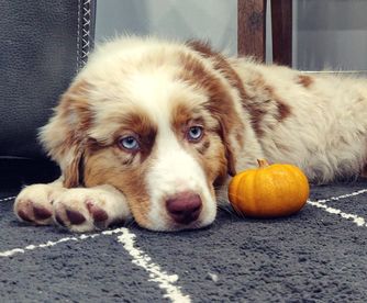 Our puppies include black, red merle, blue merle, and red. Colors will vary depending on the parent dogs.