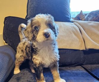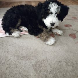 Brodie is a male mini Bernedoodle. Carefully selected as a great representative of his breed. He is our family pet, and part of our breeding program.