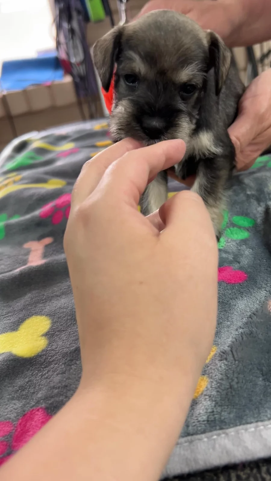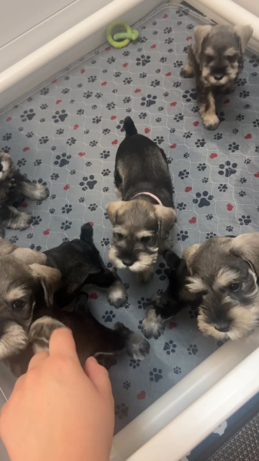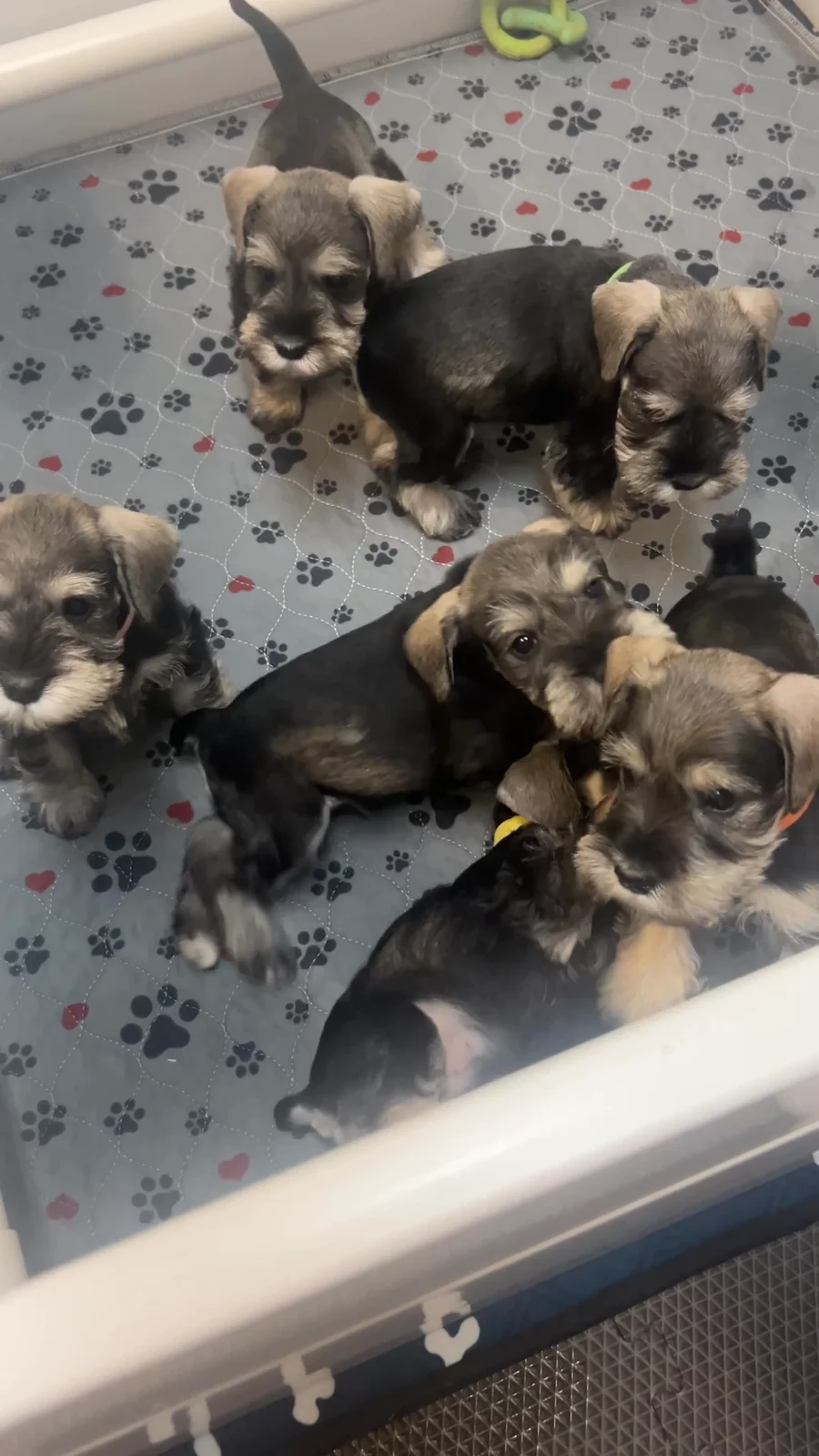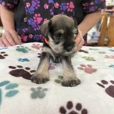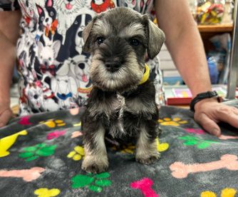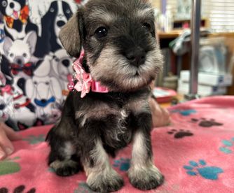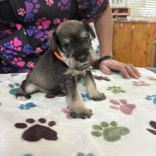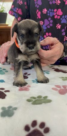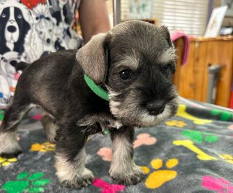 Our puppies include black and silver and salt and pepper. Colors will vary depending on the parent dogs.