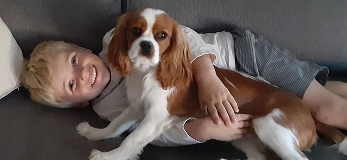 We fell in love with the beautiful and charismatic Cavalier King Charles Spaniels a couple of years ago when researching the perfect family, kid, and therapy breed. They have quickly become our kids' snuggle bugs. They truly are the perfect companion and can be either a couch potato or paddleboarding, sport dog. These are truly your versatile, friendly dogs!