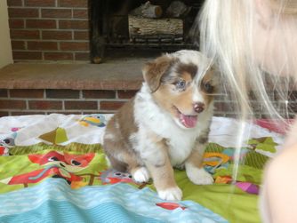 Our small breeding program allows for the pups to obtain lots of socialization with children (4 daughters). We do not dock our Aussies tails as we think they are an amazing feature of this breed.