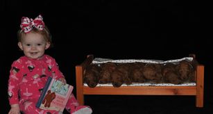 Our program focuses on raising quality health tested red AKC Standard Poodles from CHIC certified parents. We fully health test our dogs for all the required OFA tests for CHIC certification, and more. We raise all puppies in our home. At 3 days of age, we start daily biosensor training with each puppy. Our goal is to give the puppies the best start to life. Our poodles are part of our family.