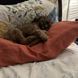 I wouldn't recommend anyone other than Noelle if you're looking to get a poodle! It was evident from the beginning that her and her husband take great care to not only raise but find the perfect homes for their puppies. She is very knowledgeable and informative, and has continued to be supportive even after I adopted my puppy. I can't express how much she's helped me through this transition, as this is the first puppy I've had on my own. She is truly a gem and cares very much for each and every poodle she raises. 1000/10!