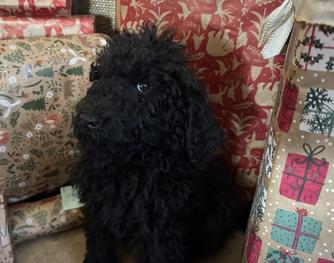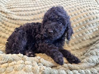 Cora is a beautiful black Mini Poodle and the most devoted little mama you could ever meet! She’s incredibly sweet, gentle, and loves nothing more than cuddling up close. Her nurturing nature shines through in everything she does — whether she’s laying with her puppies or snuggling into your lap. Cora has the perfect mix of elegance and affection, with a heart just as soft as her curls.
