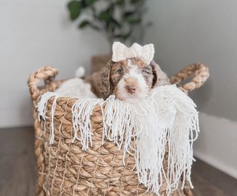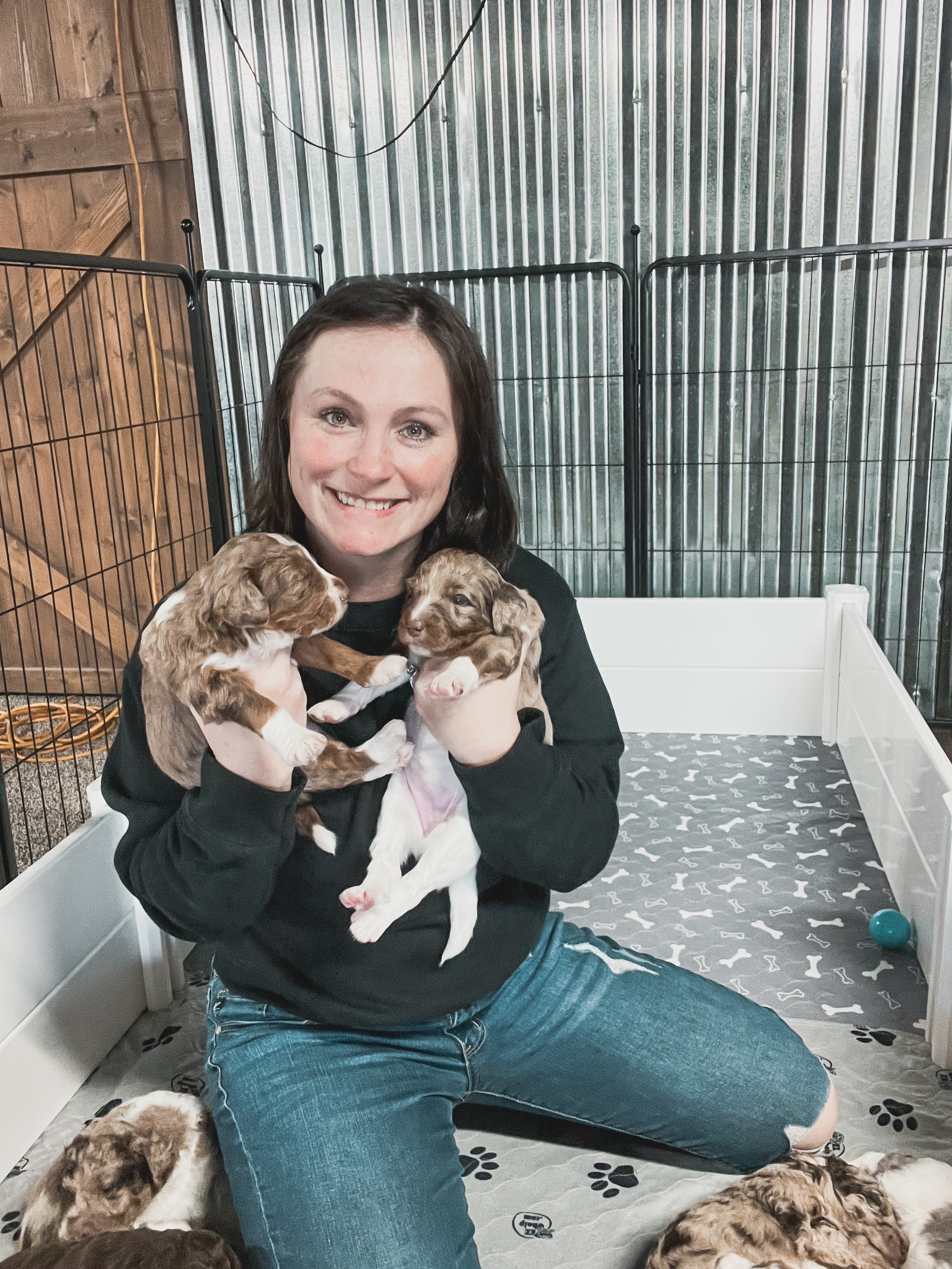 Puppy prices include a $300 non-refundable deposit and between $1,700 - $2,700 final payment, before taxes & fees.