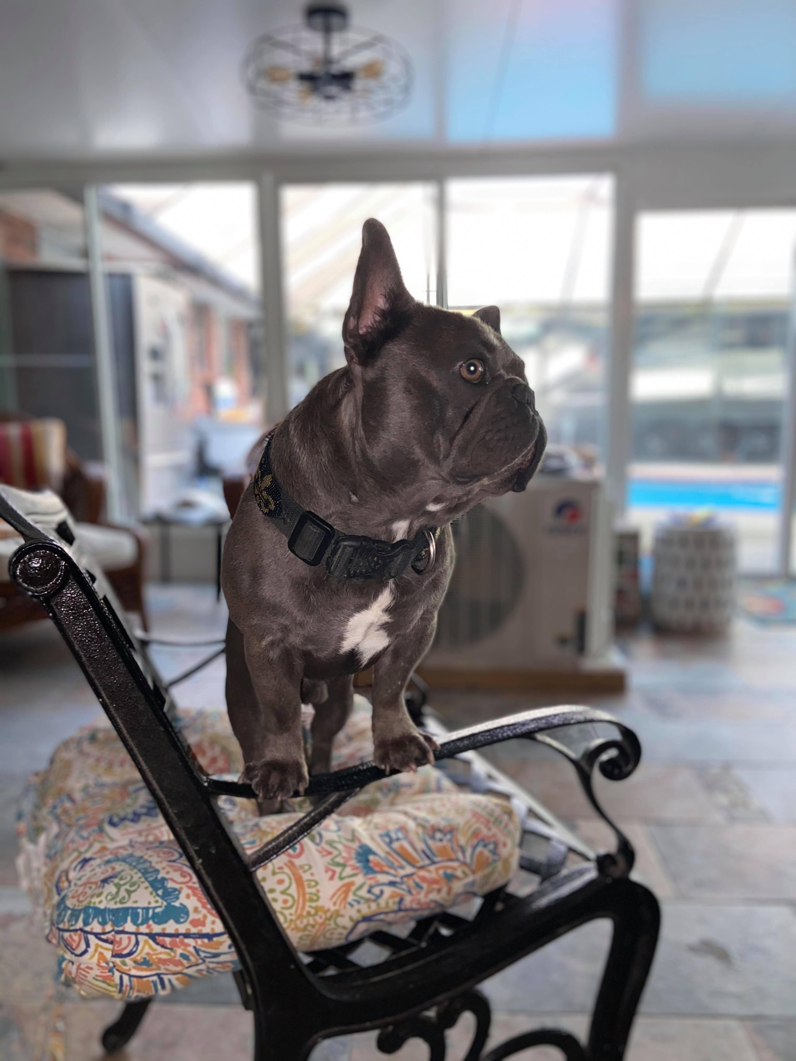 Saint is a male French Bulldog. Carefully selected as a great representative of his breed, Theresa decided to make him part of their program. Theresa has passed Good Dog’s screening process, which involved a review of their breeding practices, environment, and the mental and physical health of their dogs.