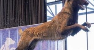 Akuma Chien Policier, is known for her high energy, confidence and athleticism. She competes regularly in dock diving competitions, and recently competed at the NADD National Championships in 2023!
