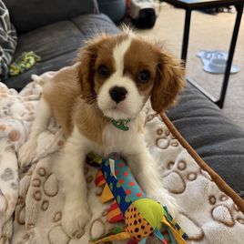 I have been researching Cavaliers for the last year and when I saw Bernie’s puppies I fell in love. She responded very quickly to all my questions and was very informative about what the litter looked like. When I was ready to put down my deposit she sent me pictures and video of the puppies so I could see who I wanted. When we arrived to pick up Aiden, Bernie and her husband welcomed us into their home and let me and my partner play with the puppies so we could find the right one for us. I appreciate her guidance and that she is very upfront about everything. We got an AMAZING boy!!!