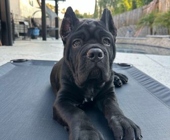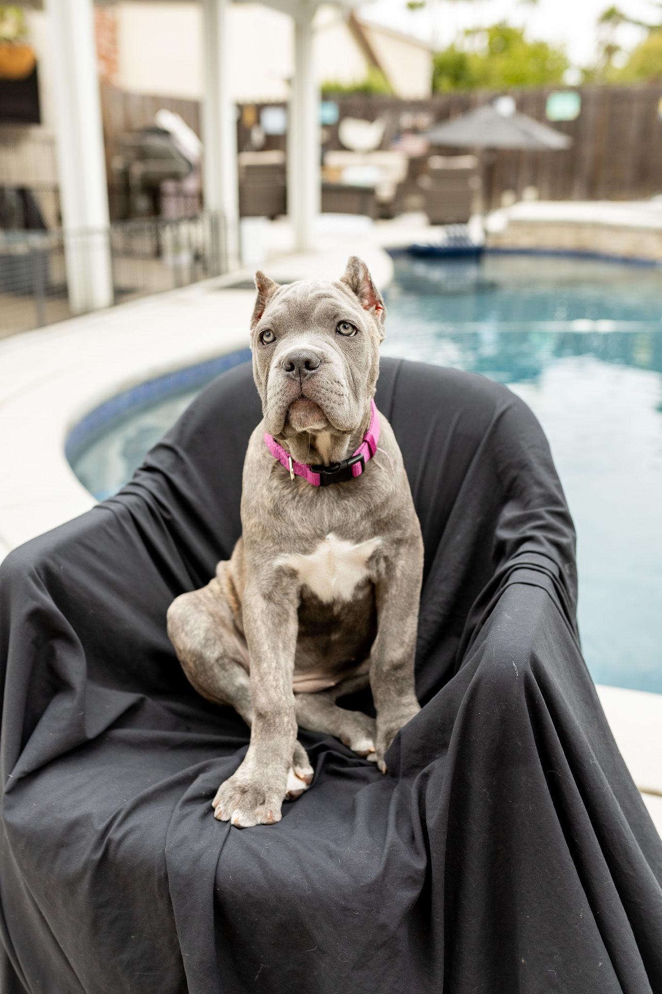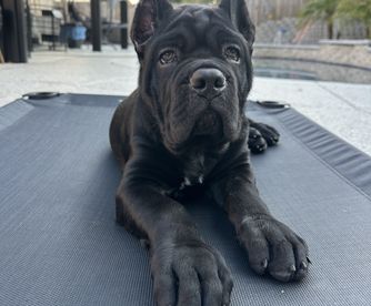 Lu is a female Cane Corso. Carefully selected as a great representative of her breed, Margie decided to make her part of their program. Margie has passed Good Dog’s screening process, which involved a review of their breeding practices, environment, and the mental and physical health of their dogs.