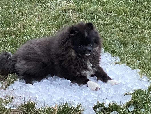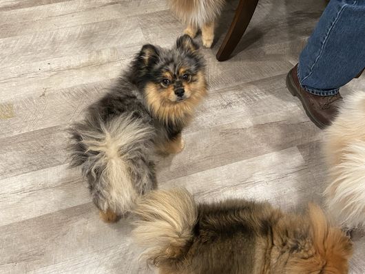 Roxy is a gentle-natured blue Merle Pomeranian who loves to go on rides with her dad in the car, absolutely loves attention, and loves kids.
