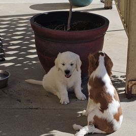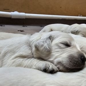 We are a family-run breeding program offering loving and loyal companions to others. We focus on 1. Breeding Goldens based on preselected calm temperaments. 2. All health and genetic clearances(OFA hips, elbows, eyes, cardiac. 3. Beautiful white coats, often referred to as "English Cream". 4. Each puppy goes through ENS & Early Socialization training and each puppy is raised with lots of love.