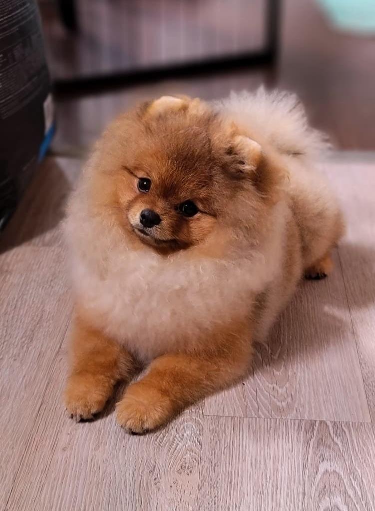 Giselle is a female Pomeranian. Carefully selected as a great representative of her breed, Whitney decided to make her part of their program. Whitney has passed Good Dog’s screening process, which involved a review of their breeding practices, environment, and the mental and physical health of their dogs.