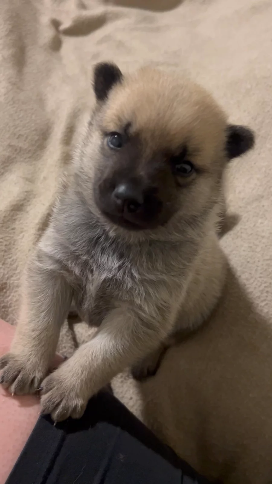 First time at the office playing with dad, first squeaky experience. 5 weeks