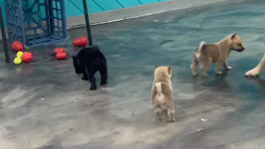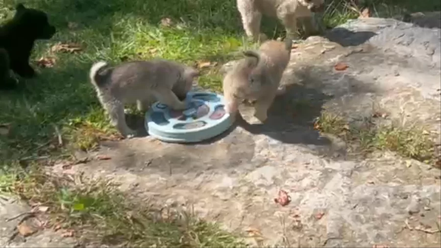 Puppies and first puzzle at 5 weeks